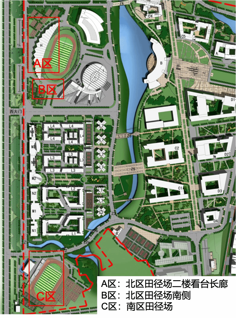 测试C区:南区田径场(共2项):①50米(东侧、西侧);②1000米(男)/800米(女)
