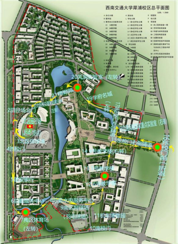 线路描述:(起/终点均设在犀浦校区北区田径场内)