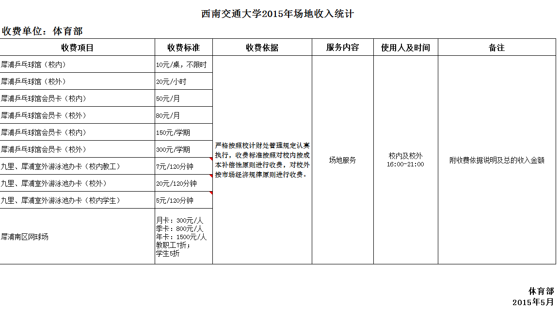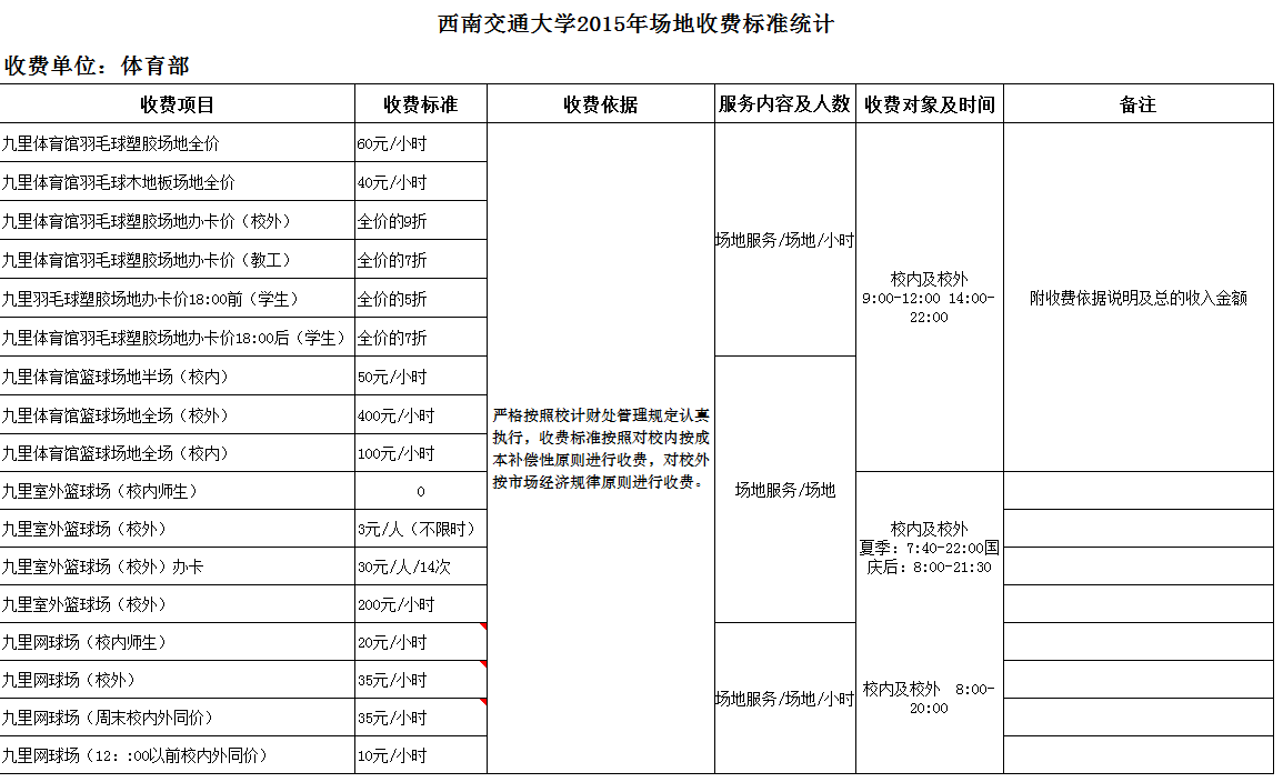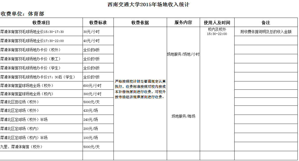 PA视讯官网入口2015年场地收费标准统计