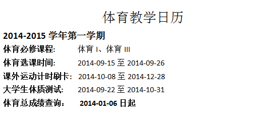 体育必修课程由四个学期组成:大一:体育I (第一学期)、体育II (第二学期) 大二:体育III(第一学期)、体育IV(第二学期)