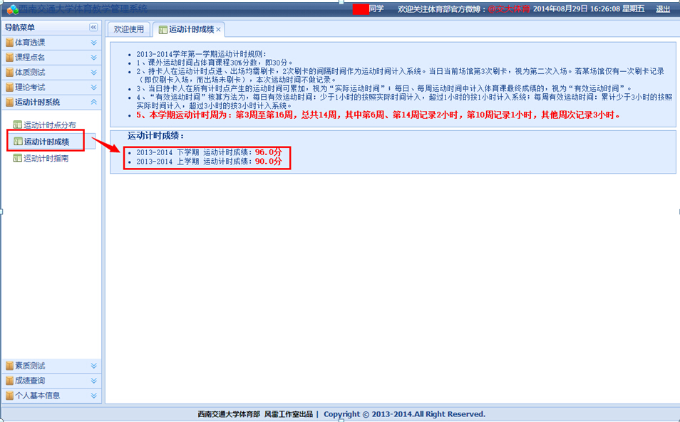 (2014-2015学年第一学期运动计时有效周从2014-10-08起开始计算)