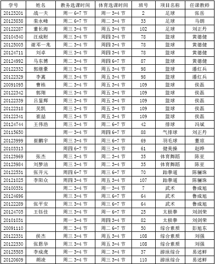 以下同学跨时间段选课,选课无效。换课调课请前往体育馆1112进行重新选课。