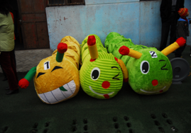 ★比赛方法:5人骑在毛毛虫上前行,注意毛毛虫不带拖地,赛程30米,用时最短者为胜。