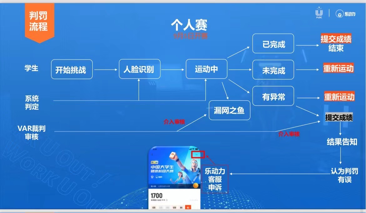 (5)比赛成绩校验流程:选手正式提交成绩后,都会接受人工智能系统和工作人员两道审核流程。人工智能系统先审核并做出判罚;如判罚有异议或出现违规情况,则由工作人员复审,并在第二天完成审核后更新成绩排行。