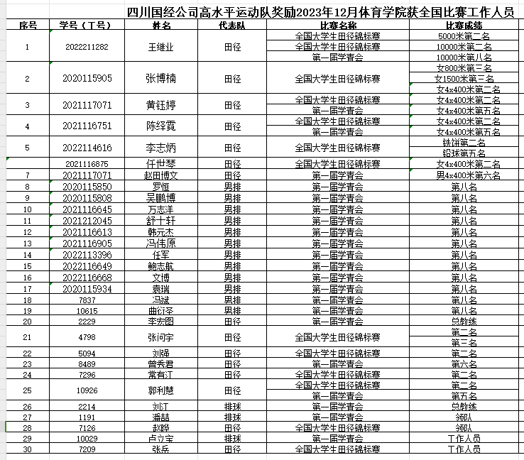 2023年度四川国经公司高水平运动队全国比赛奖励名单公示