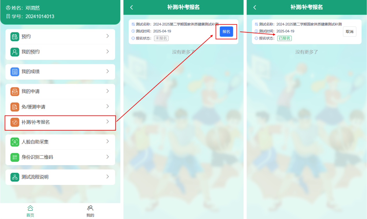 (1)在校学生补测/毕业年级学生补考报名流程如下: