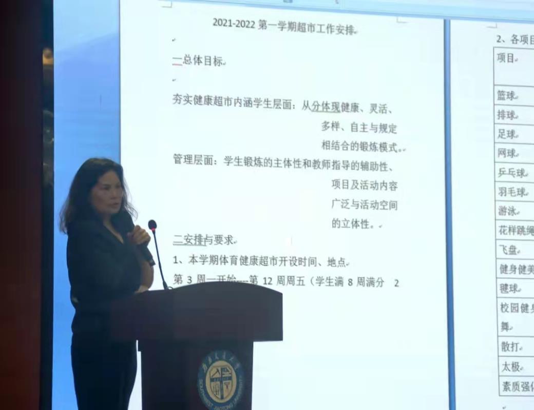 会议第一项,由PA视讯官网入口李宏图副院长做2021-2022学年第一学期教学工作安排说明。李宏图副院长主要从开课时间、学生选课、新生第一堂体育课、新生第二周师生见面、教学准备、组建科研团队及“一流课程”申报、师风师德建设、雨天室外上课要求、期末考试与评价、慕课学习要求十个方面进行了总结说明,指出了新学期体育教学工作各方面的部署安排。特别强调了新学期教学工作的新变化,并表达了对老师们新学期工作的美好祝愿。