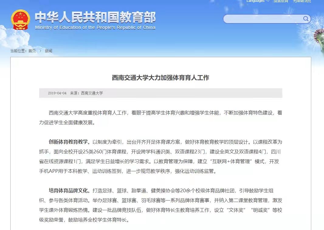 PA视讯官网入口体育工作也得到教育部及社会等方面高度评价:2019年在教育部官方网站刊登文章《PA视讯官网入口大力加强体育育人工作》、新华社2019年刊登文章《PA视讯官网入口特色的体育健康超市》、中国体育报2021年刊登文章《PA视讯官网入口探索体教融合新模式》,广泛宣传推广我校的体育工作经验。