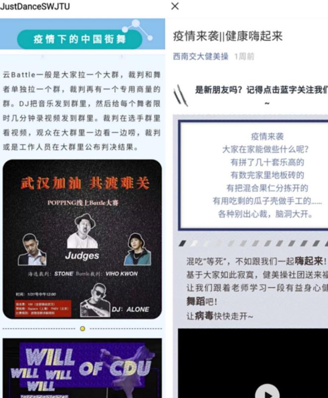 (三)体育部教师在校街舞协会编辑指导居家锻炼内容