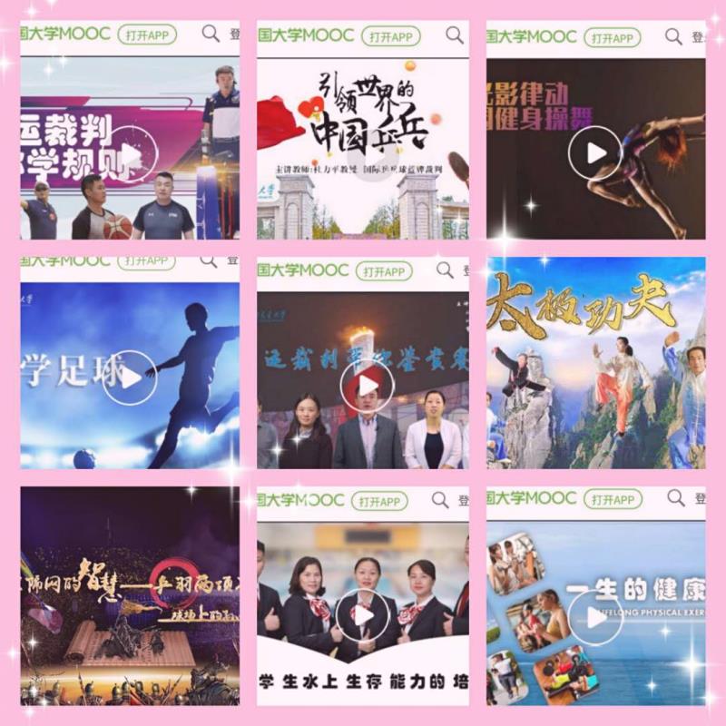 如今,十门已上线课程百花齐放,无论是课程数量还是课程涵盖内容,都在全国大学中一马当先。PA视讯官网入口体育部在中国大学生MOOC网站平台中展现出了全国重点大学的大家风范。