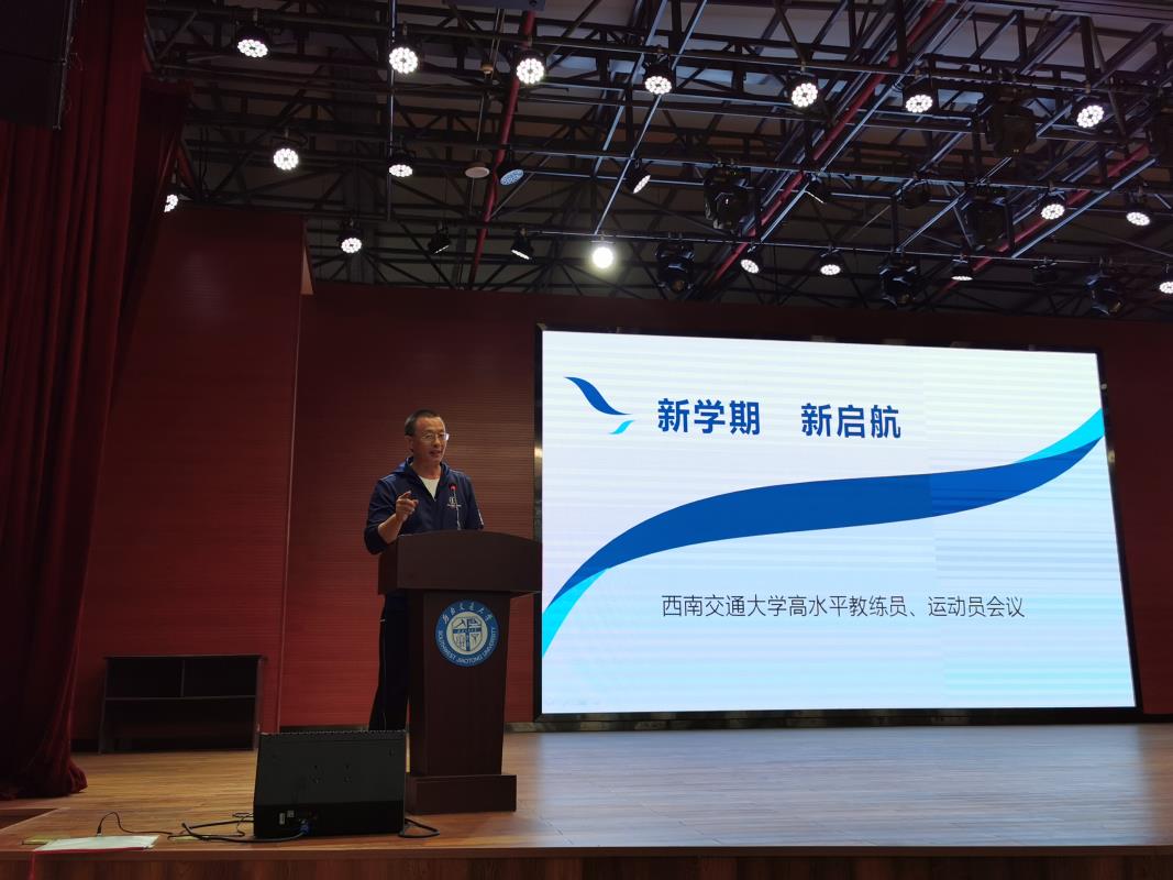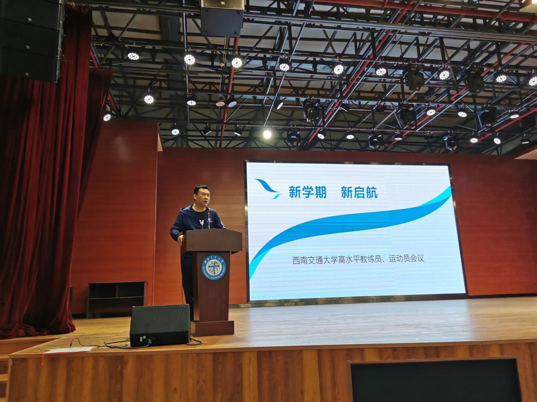 “体育强则中国强,国运兴则体育兴”。何江明副教授向队员们传达了关于《关于深化体教融合 促进青少年健康发展的意见》精神并以“文武双全”对全体运动员进行要求,强调高水平运动员不仅要完成学习任务同时也要完成竞赛任务,要在努力学习,不断提高运动水平的基础上,传承和发扬交大体育精神和体育传统。