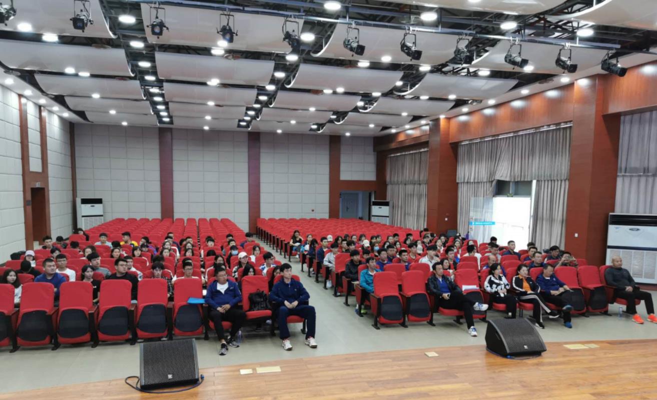 会议第一项议程由土木工程学院优秀辅导员付真珍老师为全体运动员作动员讲话