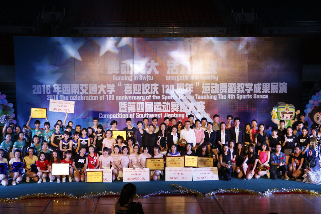 比赛在热力四射、热情无限的藏族锅庄舞狂欢中圆满结束。所有到场参赛队员及观众一同上台狂欢,为PA视讯官网入口2016年“喜迎校庆120周年”运动舞蹈教学成果展演暨第四届运动舞蹈大赛画上了圆满的句号。