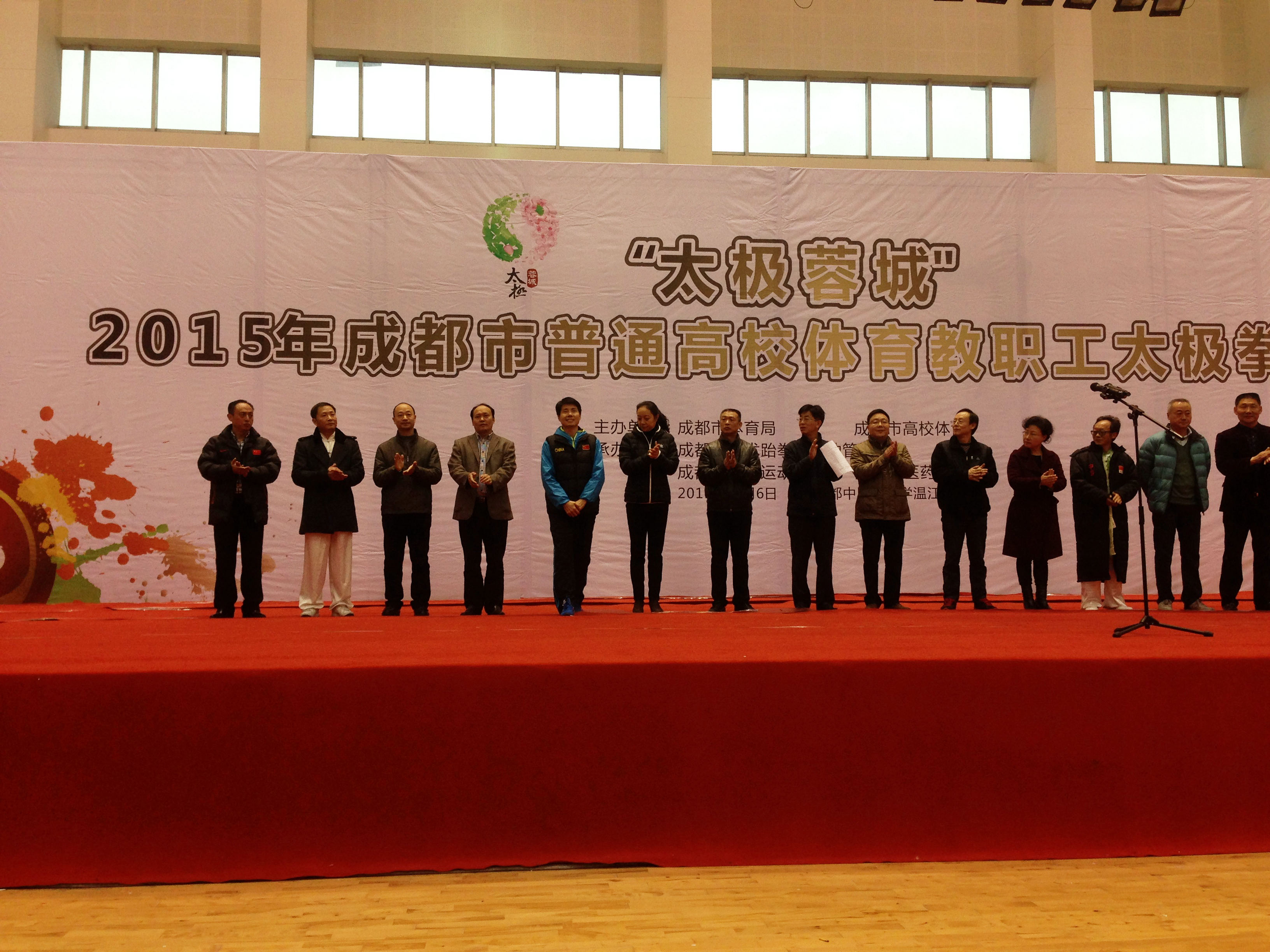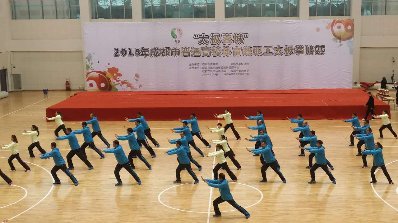 12月6日,“太极蓉城”2015年成都市行政村(社区)太极拳总决赛暨2015年成都市普通高校体育教职工太极拳比赛在成都中医药大学(温江校区)体育馆举办。我部全体教职员工参加了本次比赛并获得一等奖。