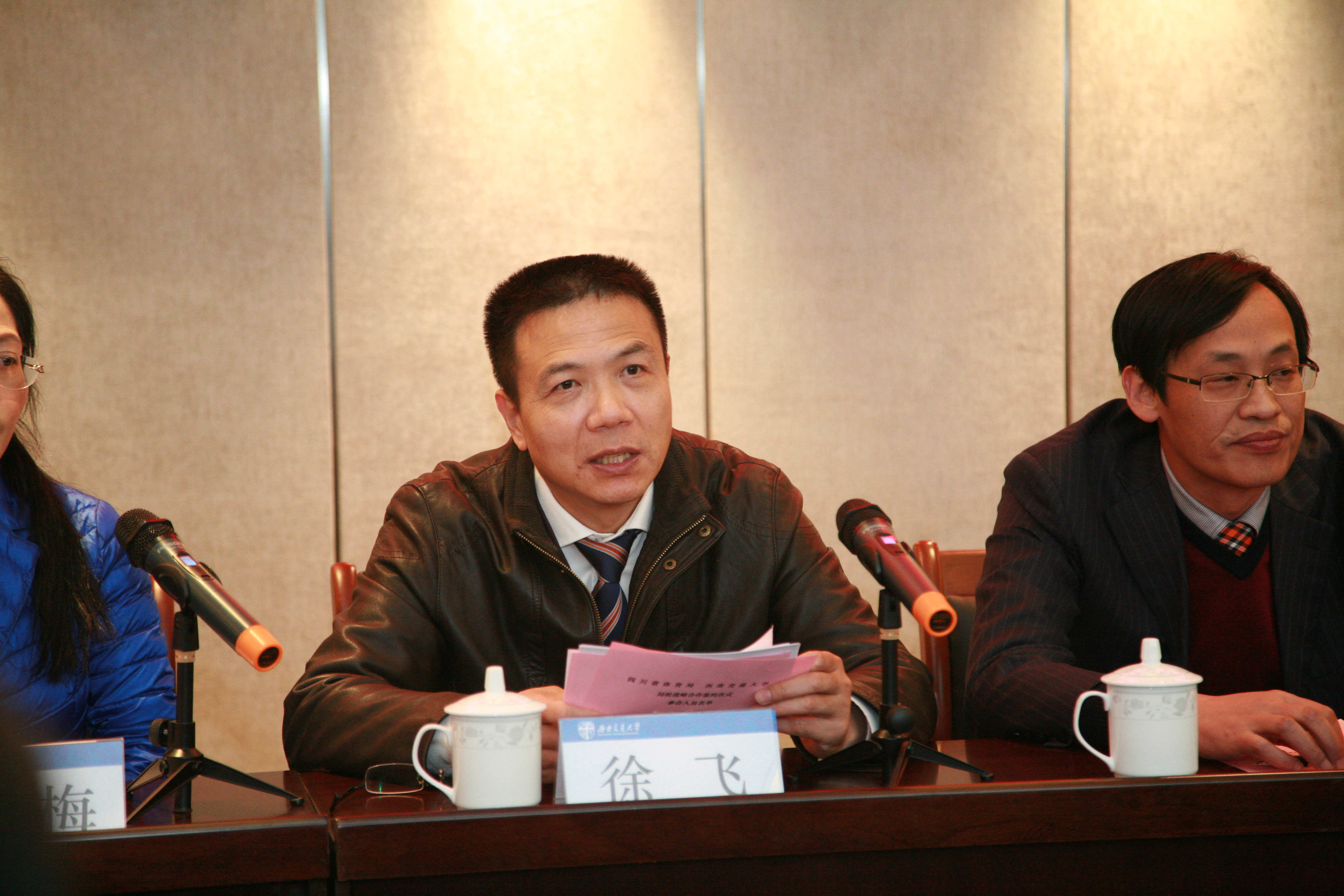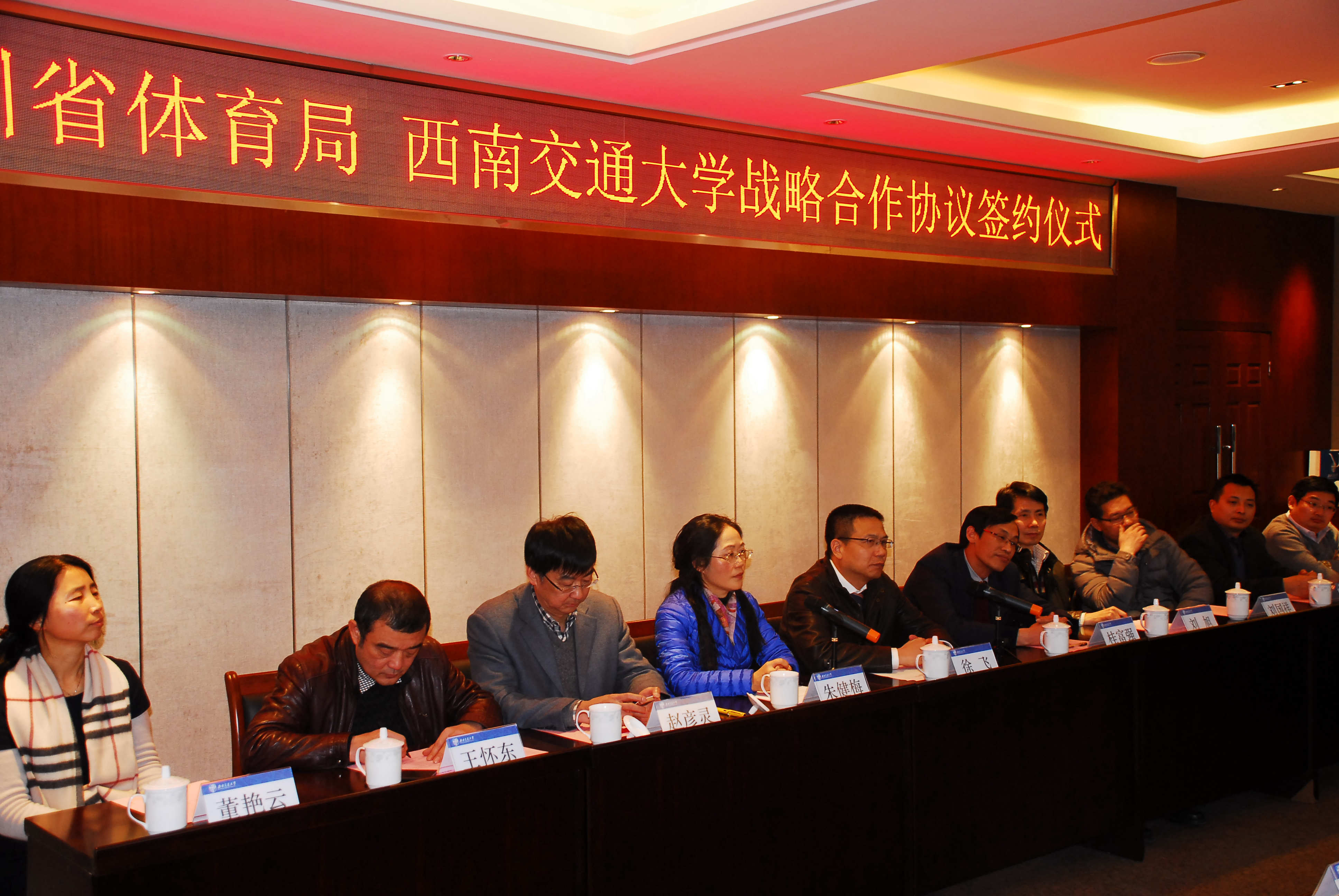 徐飞代表学校对四川省体育局一直以来对学校的关心与支持表示感谢,简要介绍了学校的发展沿革及体育工作发展情况,并对未来的合作表示非常期待;四川省体育局则希望不断拓宽合作,不仅在技术方面,还应在人才培养等方面做好做实。体育局希望运动员是全面的人,因此,期待通过合作,借力西南交大,培养出更多更好的体育人才。