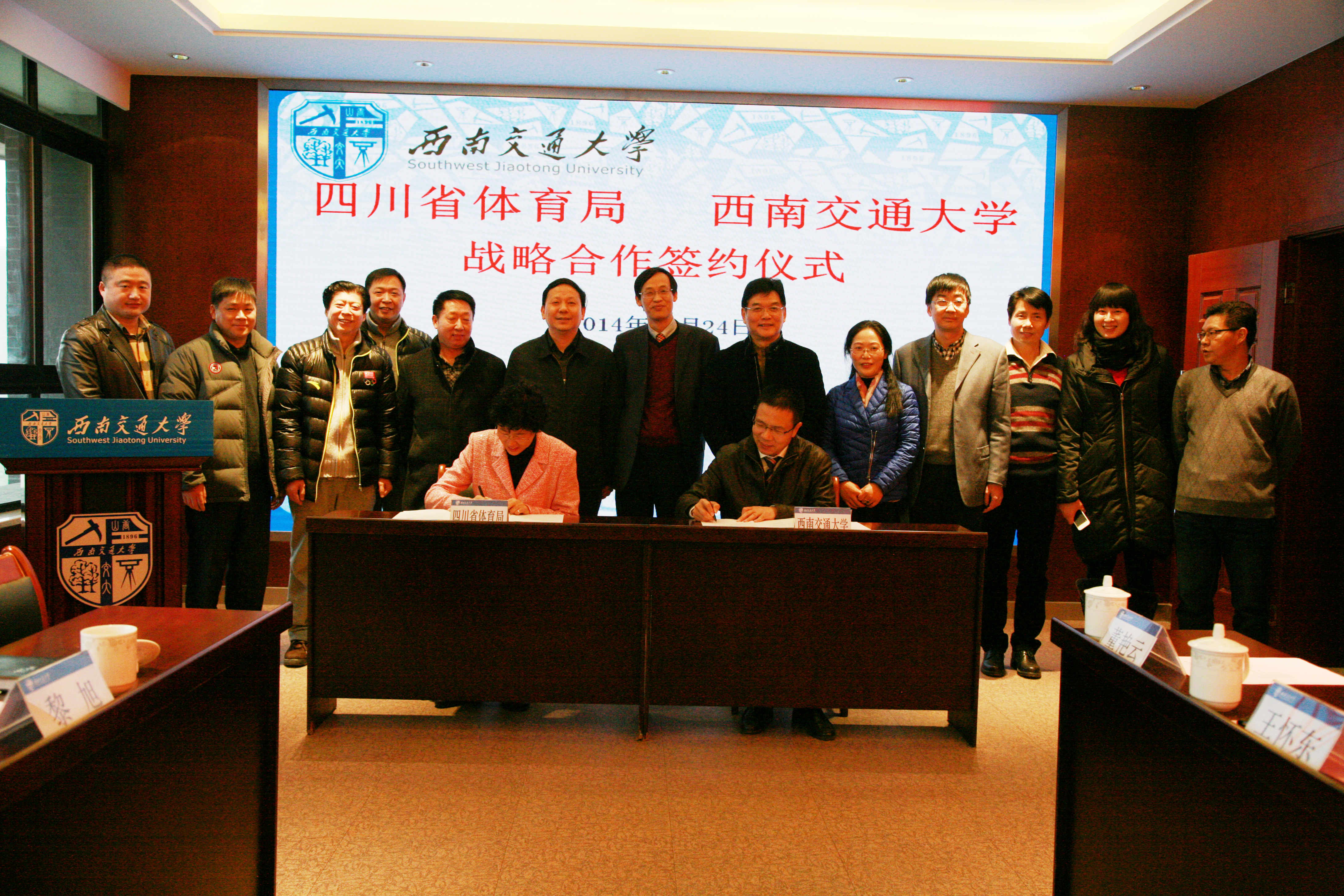12月24日,学校与四川省体育局签署战略合作协议。四川省体育局局长朱玲、副局长刘践、副局长兼运动技术学院院长张容伟等一行;校长徐飞、校党委副书记桂富强、副校长朱健梅及相关部门负责人出席仪式。朱健梅主持仪式。
