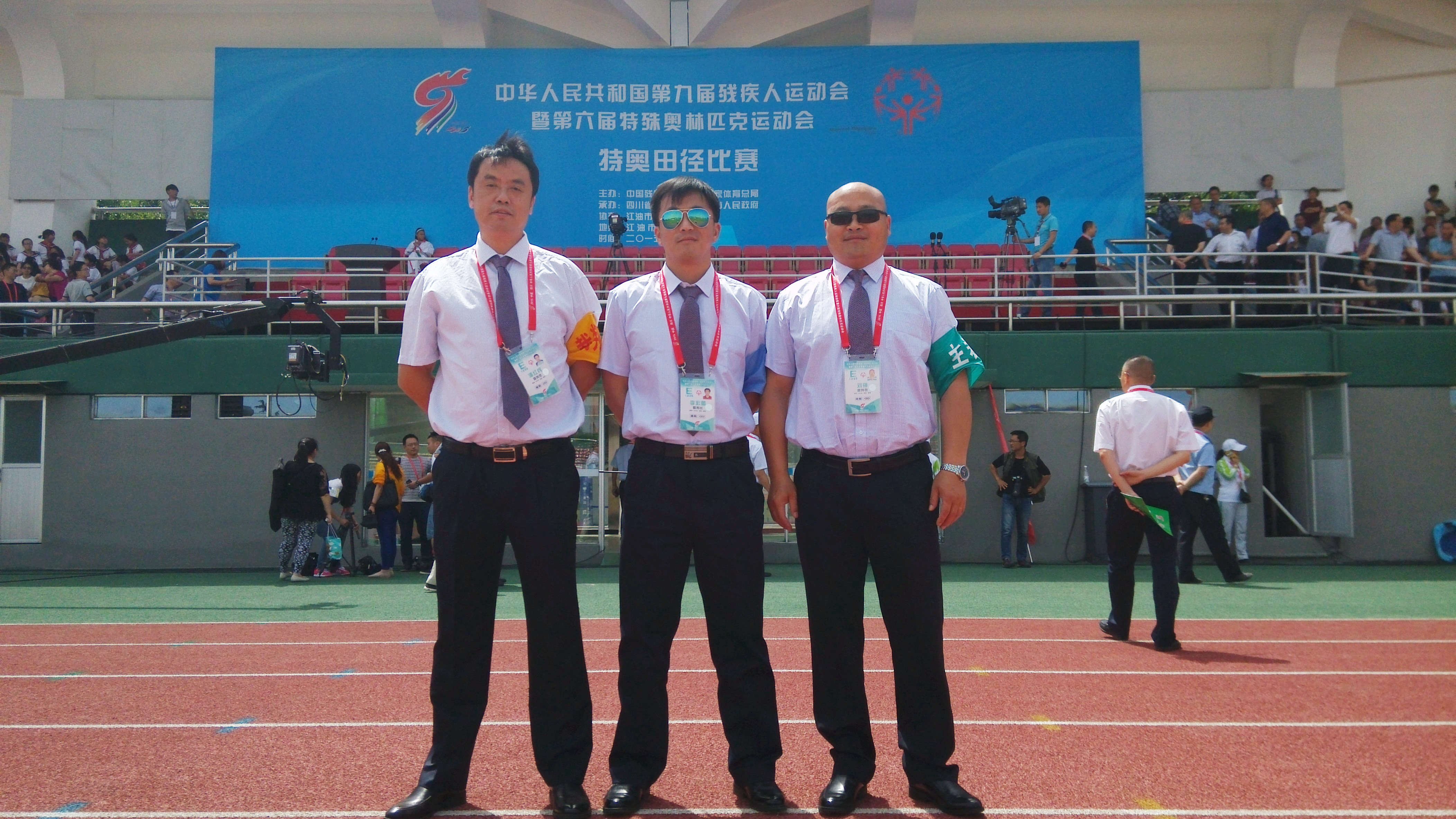 5月11日下午,中华人民共和国第九届残疾人运动会暨第六届特殊奥林匹克运动会特奥项目田径比赛在四川绵阳正式开赛,来自全国31个省市及新疆生产建设兵团、香港、澳门特别行政区的34个代表团、1200余名运动员进行了一场精彩的体育竞技盛会。受本届运动会竞赛工作部的委派,我校体育部教师李宏图担任本次运动会田径比赛的副总裁判长、刘强担任田赛主裁判、潘红兵担任发令裁判。