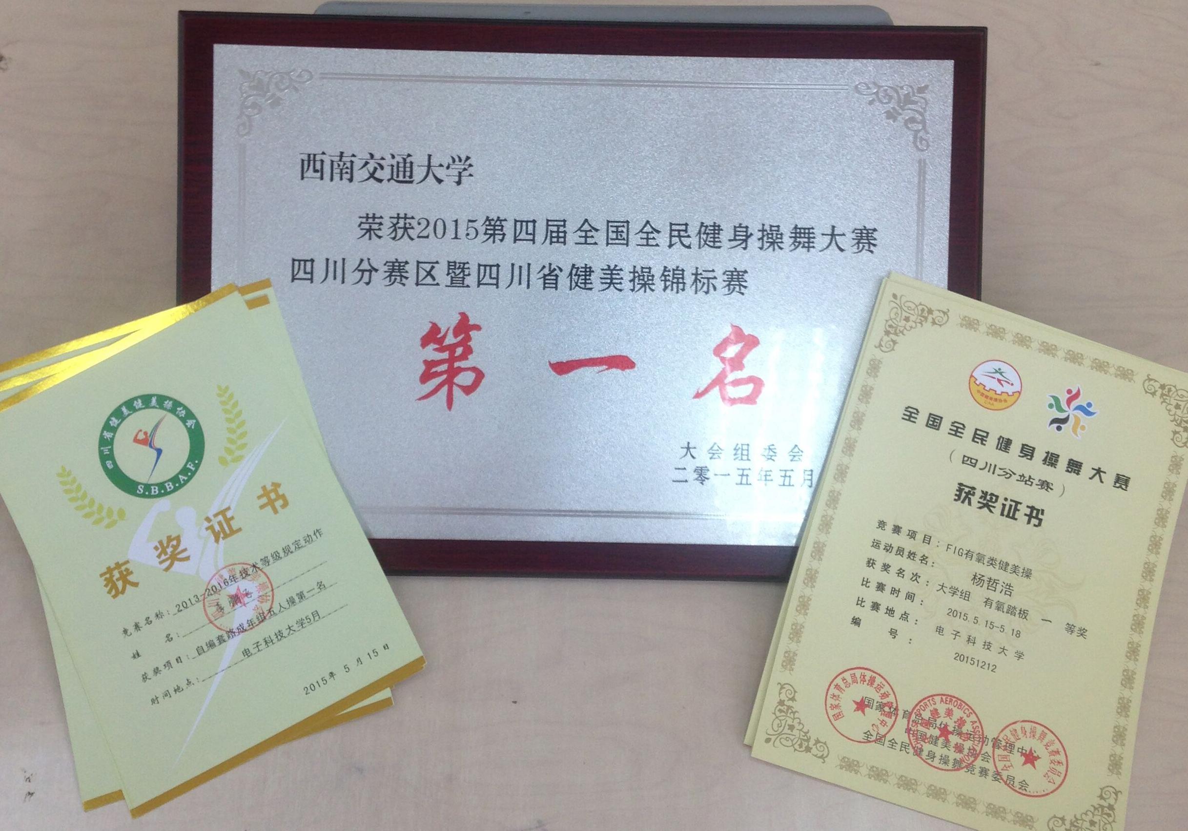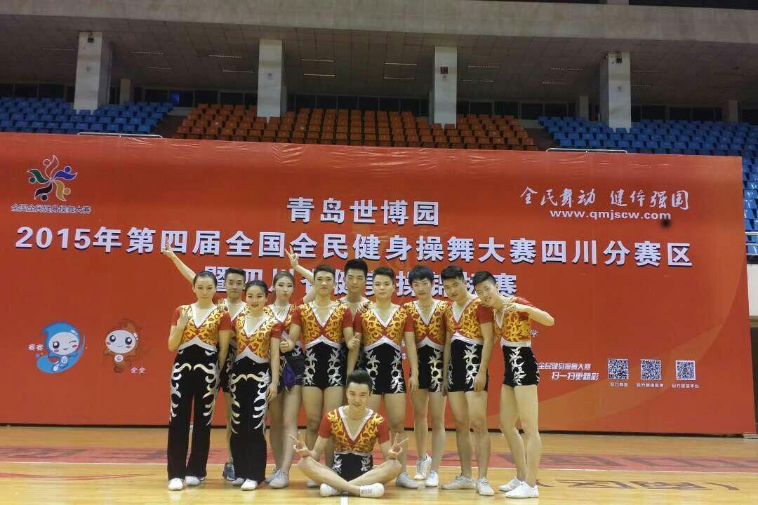 2015年5月15日至17日,第四届全国全民健身操舞大赛(四川分赛区)暨四川省健美操锦标赛在电子科技大学(沙河校区)体育馆隆重举行。我校高水平竞技健美操队夺下男子单人操、五人操、有氧踏板操三个项目的冠军。