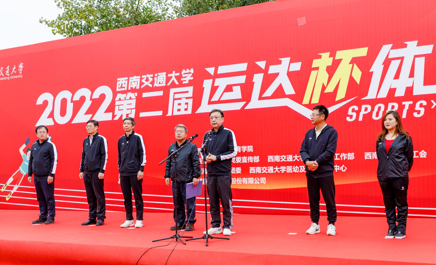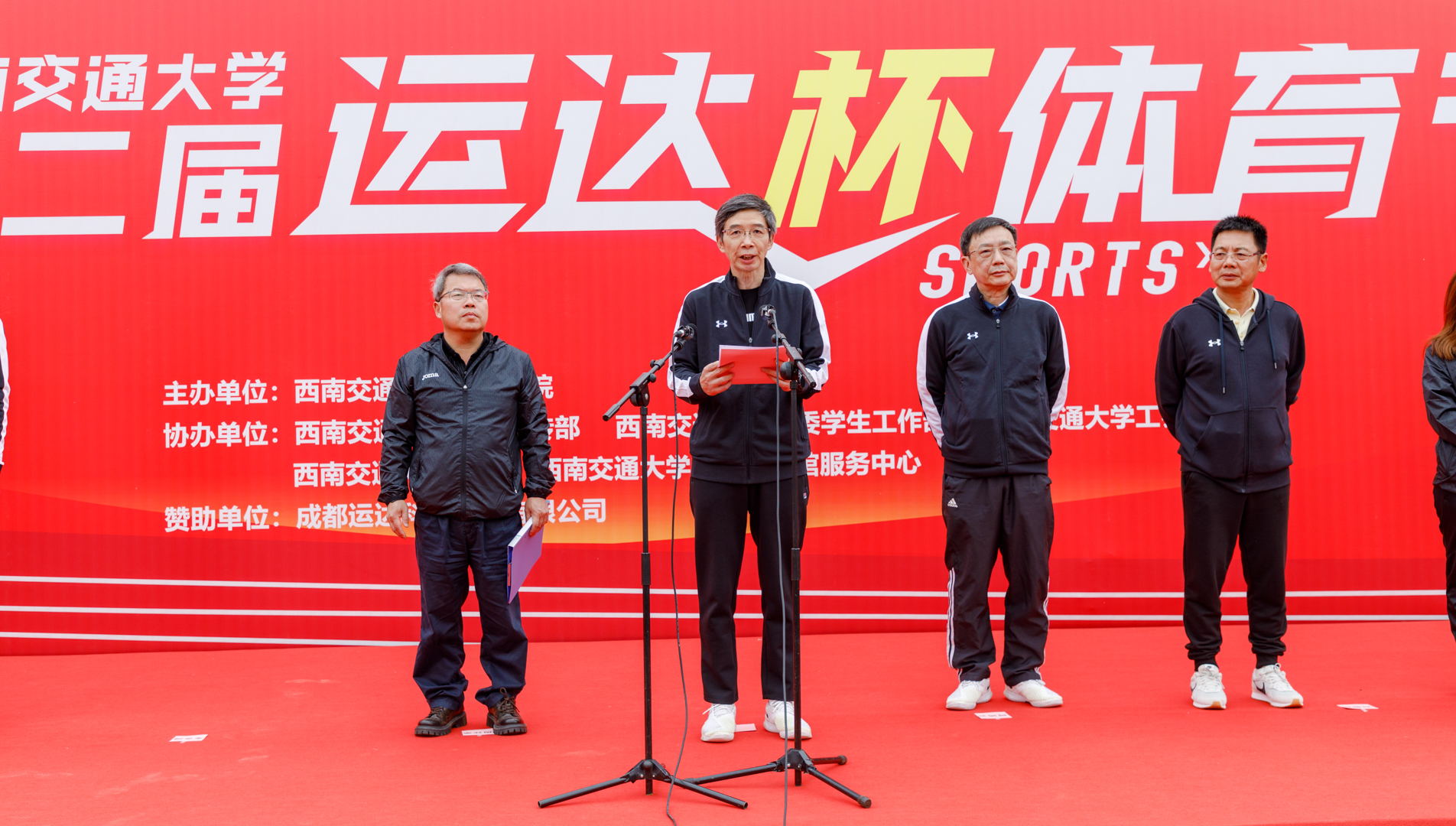 为深入学习贯彻党的二十大精神,习近平总书记提出“广泛开展全民健身运动,加强青少年体育工作,促进群众体育和竞技体育全面发展,加快建设育强国”;落实学校第十五次党代会精神,加强全民健身运动;培养师生健康意识,促进师生健康锻炼,提高师生健康素养。11月6日,PA视讯官网入口与成都运达科技股份有限公司联合举办第二届“运达杯”体育节。PA视讯官网入口校长杨丹、副校长周仲荣,成都运达科技股份有限公司董事长何鸿云、副董事长兼首席专家朱金陵、市场与战略部经理刘淼羽、PA视讯官网入口党政办主任靳能法、学生工作部部长高平平、党委保卫部部长张占军、工会主席郑江、团委书记张军琪、研究生院常务副院长周先礼、PA视讯官网入口党委书记潘喆出席开幕式。PA视讯官网入口院长刘江主持开幕式。