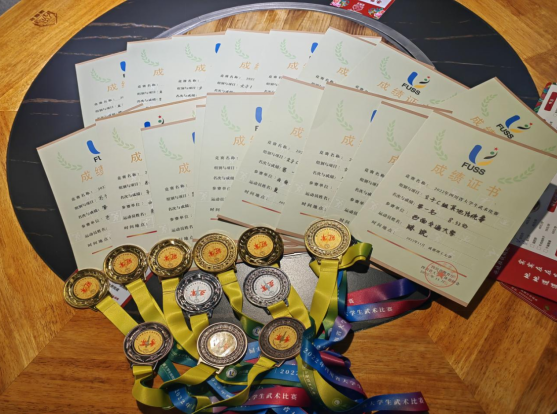 比赛期间,我校学生武术代表队发扬永争第一、顽强拼搏的精神,共获得6金5银3铜的优异成绩,旨在贯彻落实国家“强化体育课和课外锻炼,促进青少年身心健康、体魄强健”的要求,助力中华优秀传统体育文化在校园的传播,丰富校园体育文化生活,促进大学生健康成长。