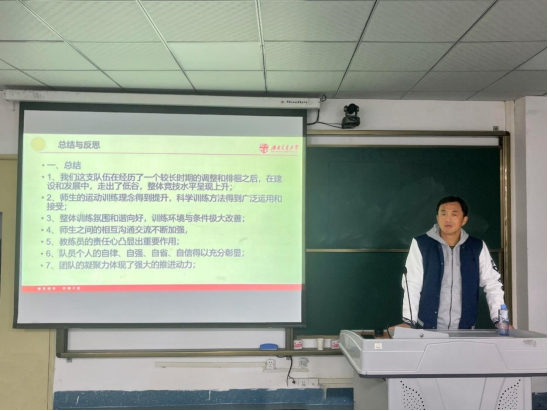 首先,李宏图副院长对2022年四川省大学生田径锦标赛进行了总结。对此次比赛取得的成果给予肯定。感谢教员们的辛勤付出和队员们的努力,并指出此次比赛中存在的问题,提出解决方案。