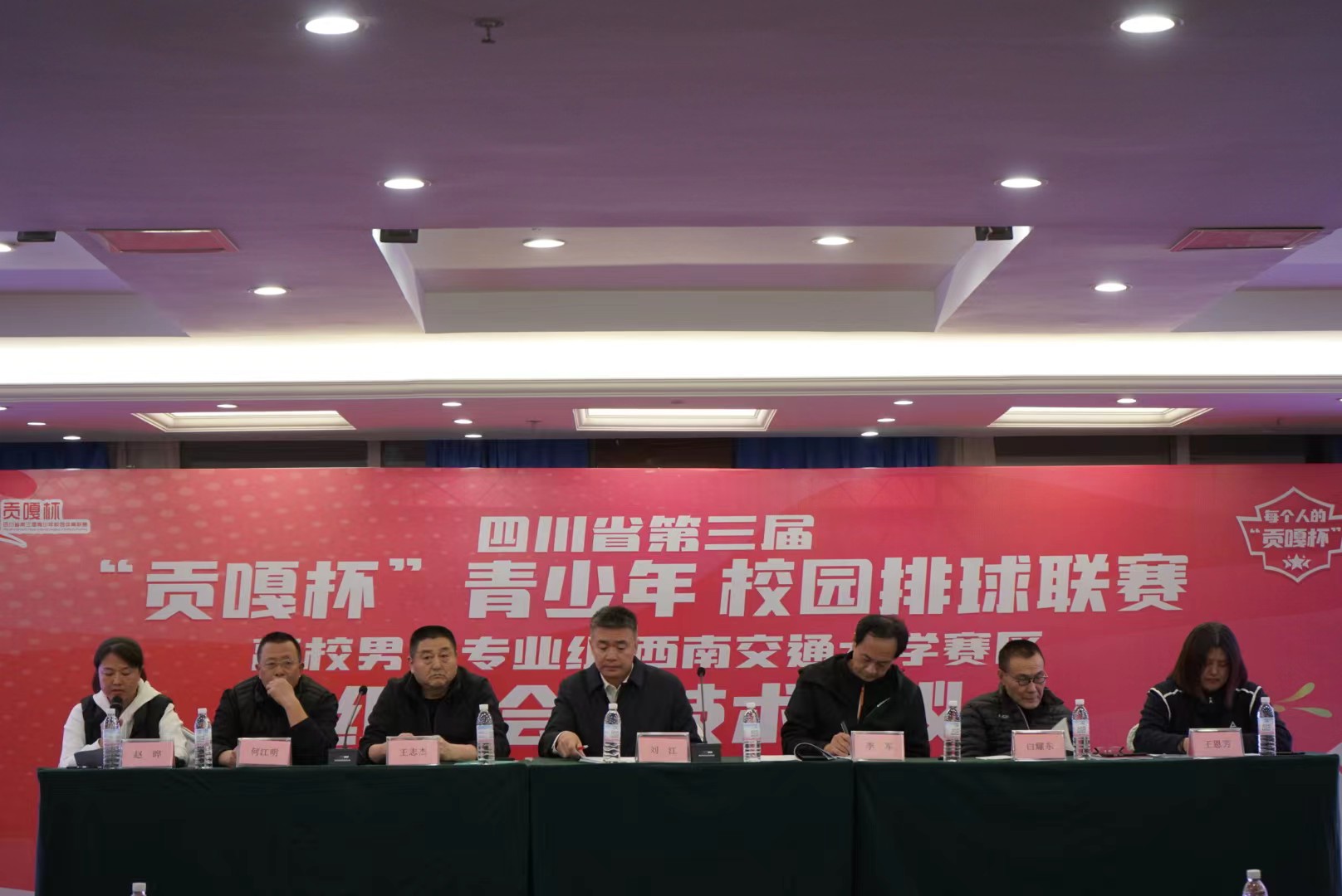 3月26日晚上20:00,第三届“贡嘎杯"青少年校园排球联赛(高校男子专业组)联席会在丽天花园酒店举行,四川省大学生协会秘书长、PA视讯官网入口院长、本次比赛管委会主任刘江教授;仲裁委员王志杰教授、王恩芳女士;裁判委员李军教授、白耀东教授;技术委员何江明教授;PA视讯官网入口院长助理赵晔老师等出席本次赛前联席会。联席会上,PA视讯官网入口院长刘江代表赛事承办单位致欢迎词,向筹办本次比赛的老师、工作人员表示崇高的敬意,向各位兄弟院校的大力支持表示衷心的感谢和良好的祝愿,并预祝本次赛事取得圆满成功。