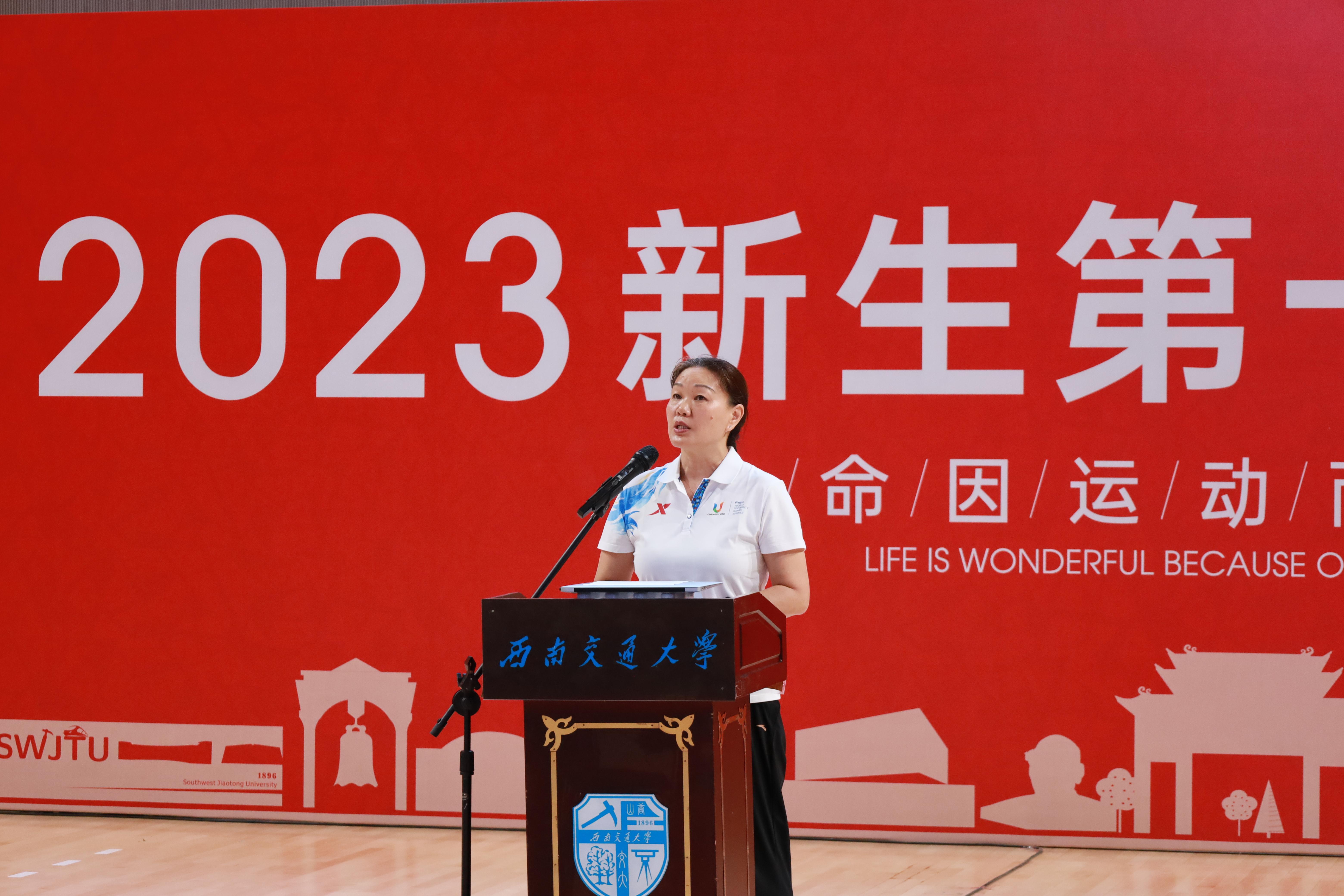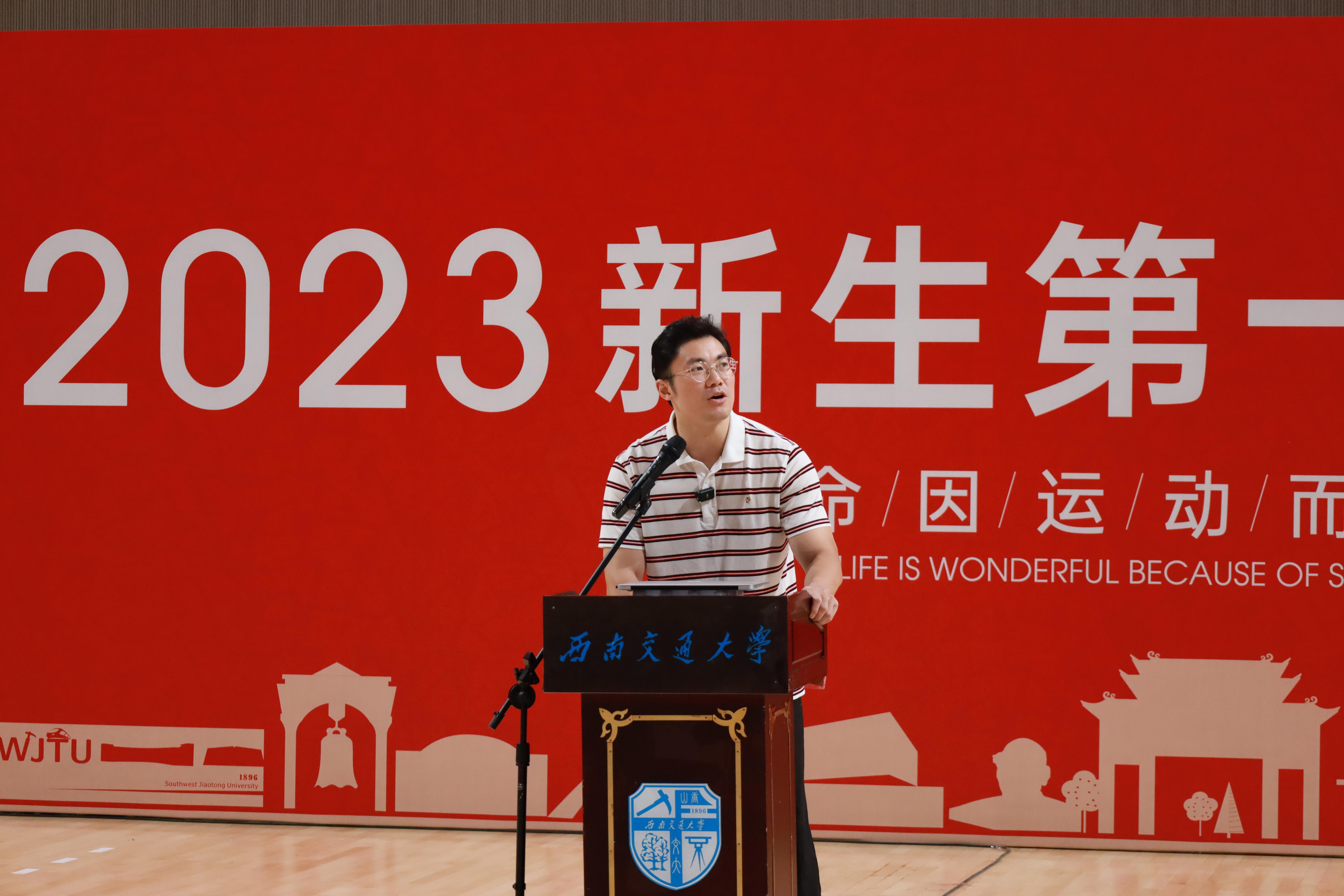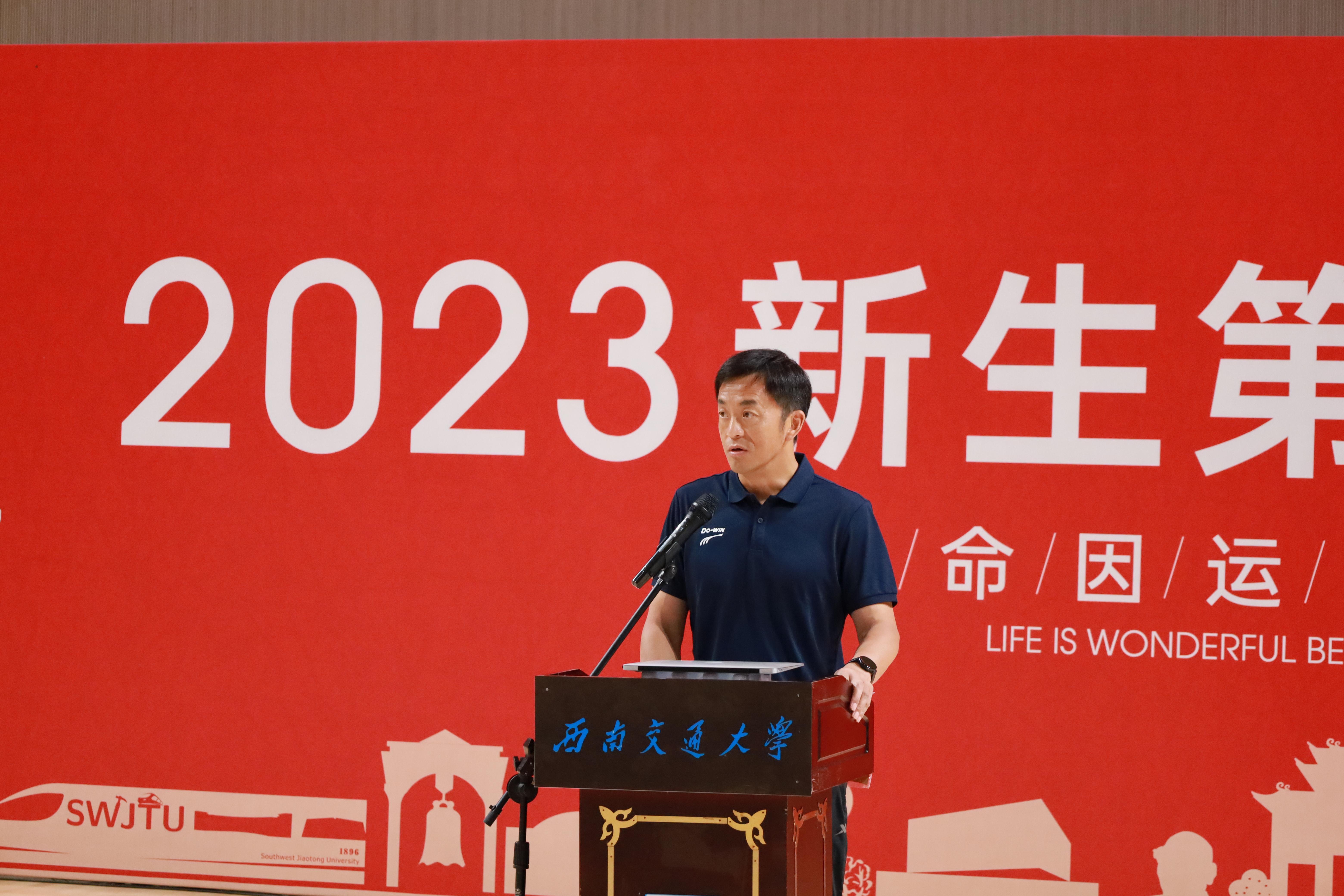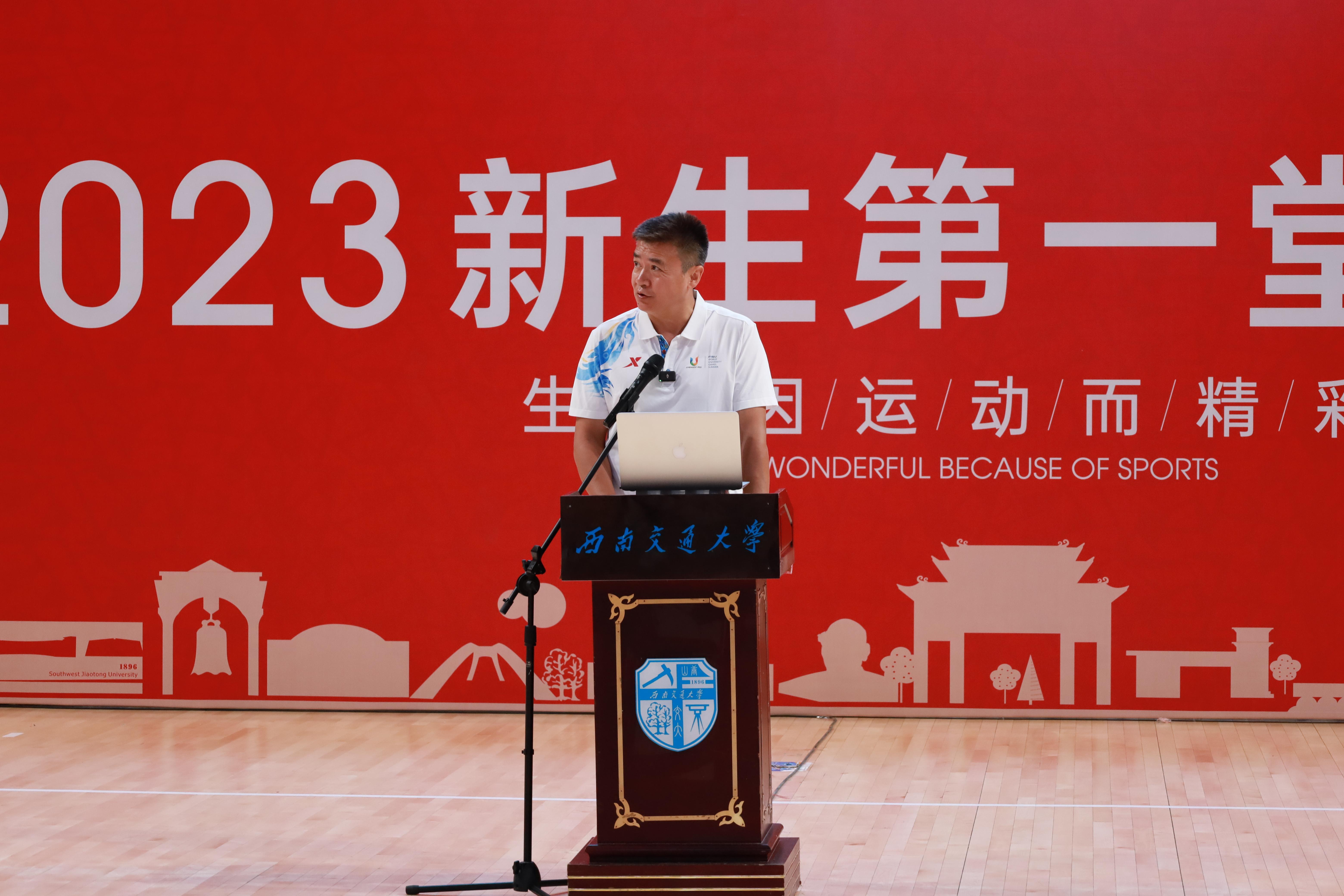 刘江教授代表PA视讯官网入口全体教职工向2023级本科新生表示热烈的祝贺和诚挚的欢迎。他向同学们分享了自己担任奥运裁判以及成都大运会技术官员代表的体会与思考,他强调新时代大学生要弘扬为国争光、无私奉献、科学求实、遵纪守法、团结协作、顽强拼搏的中华体育精神,要通过自我锻炼来拥有健康的体魄、强大动力和乐观的精神,这是我们开设体育课、鼓励同学们参与体育锻炼的目的所在。同时在刚刚结束的世界大学生运动会中,世界各地的大运健儿结伴来到成都,通过世界大学生运动会,让世界感受到了中国青年精湛的技能、良好的风貌和强大奋进的中国力量,跨越地域的阻隔、克服语言的障碍,只为同一个梦想,这是体育的独特魅力,也是我们希望通过体育课传递的正能量。刘江教授指出,大学体育肩负着强健体魄、健全人格、磨炼意志、激发潜力、促进人全面发展的责任使命,希望全体学生在学习生活中汲取体育精神,保持身心健康,以奋进之姿,书写青春华章。刘江教授代表PA视讯官网入口全体教职工向2023级本科新生表示热烈的祝贺和诚挚的欢迎。他向同学们分享了自己担任奥运裁判以及成都大运会技术官员代表的体会与思考,他强调新时代大学生要弘扬为国争光、无私奉献、科学求实、遵纪守法、团结协作、顽强拼搏的中华体育精神,要通过自我锻炼来拥有健康的体魄、强大动力和乐观的精神,这是我们开设体育课、鼓励同学们参与体育锻炼的目的所在。同时在刚刚结束的世界大学生运动会中,世界各地的大运健儿结伴来到成都,通过世界大学生运动会,让世界感受到了中国青年精湛的技能、良好的风貌和强大奋进的中国力量,跨越地域的阻隔、克服语言的障碍,只为同一个梦想,这是体育的独特魅力,也是我们希望通过体育课传递的正能量。刘江教授指出,大学体育肩负着强健体魄、健全人格、磨炼意志、激发潜力、促进人全面发展的责任使命,希望全体学生在学习生活中汲取体育精神,保持身心健康,以奋进之姿,书写青春华章。