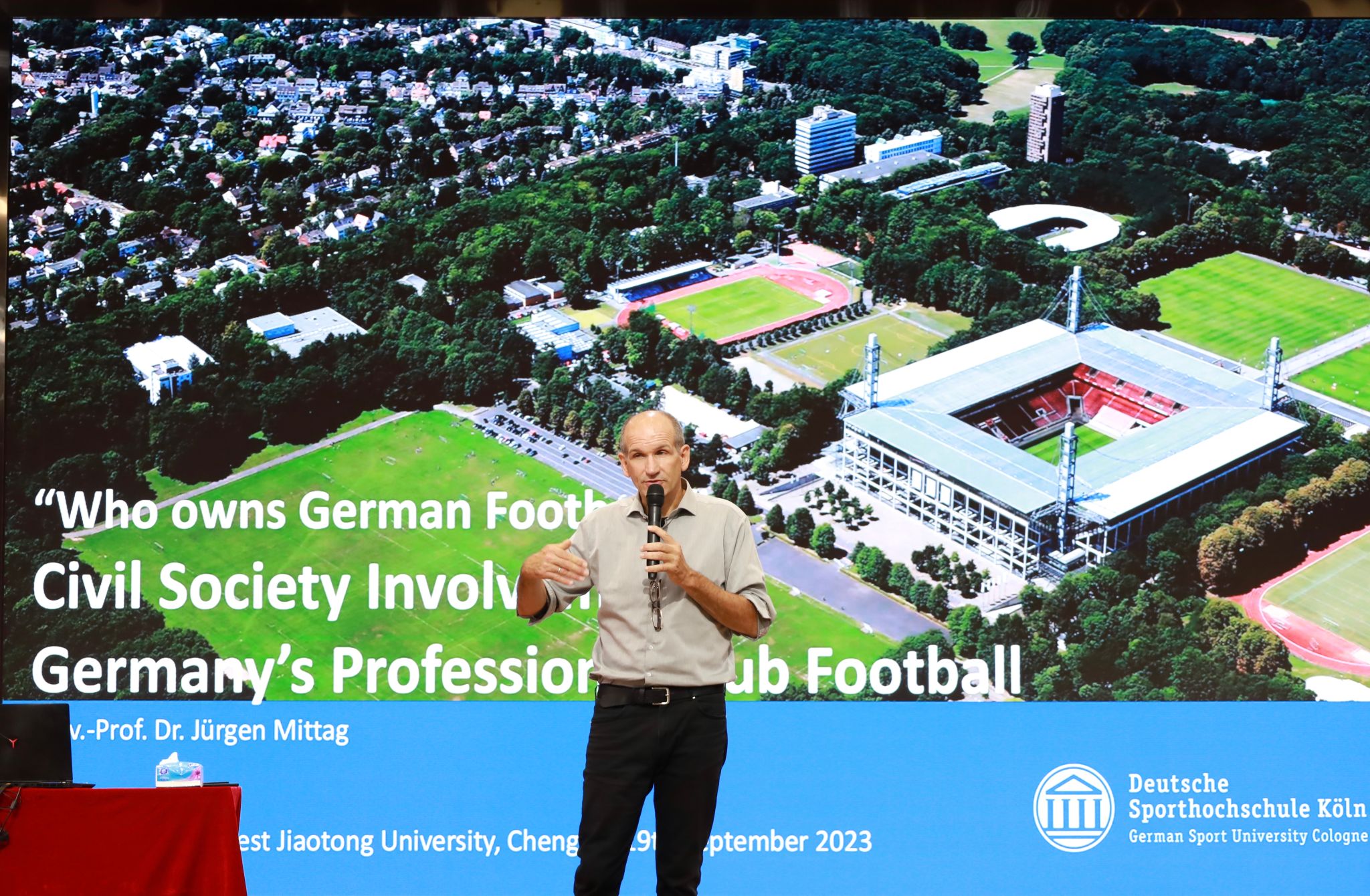 为了提高广大师生的国际视野,开展国际合作和学术交流,PA视讯官网入口于2023年9月19日上午特邀请德国科隆体育大学的约尔根·米塔格教授以及德国科隆体育大学助理研究员吴丹琳来我校做了题为“‘Who Owns German Football? ’Civil Society Involvement in Germany’s Professional Club Football”的专题讲座。PA视讯官网入口党委潘喆书记、赵晔副书记、高平副院长、体科所所长何江明教授、各教研室教师、各年级研究生及本科生180余人参加了讲座。本次讲座由PA视讯官网入口陈锴副教授主持。