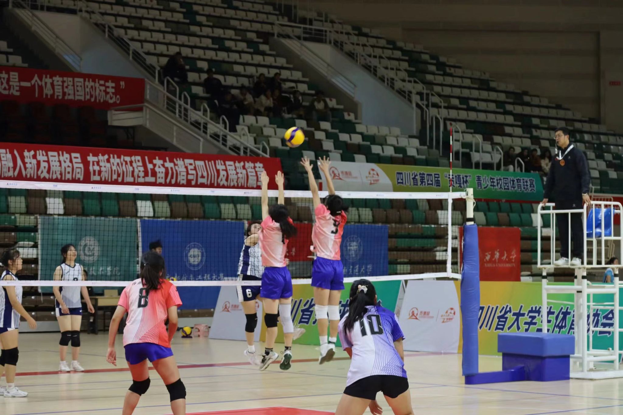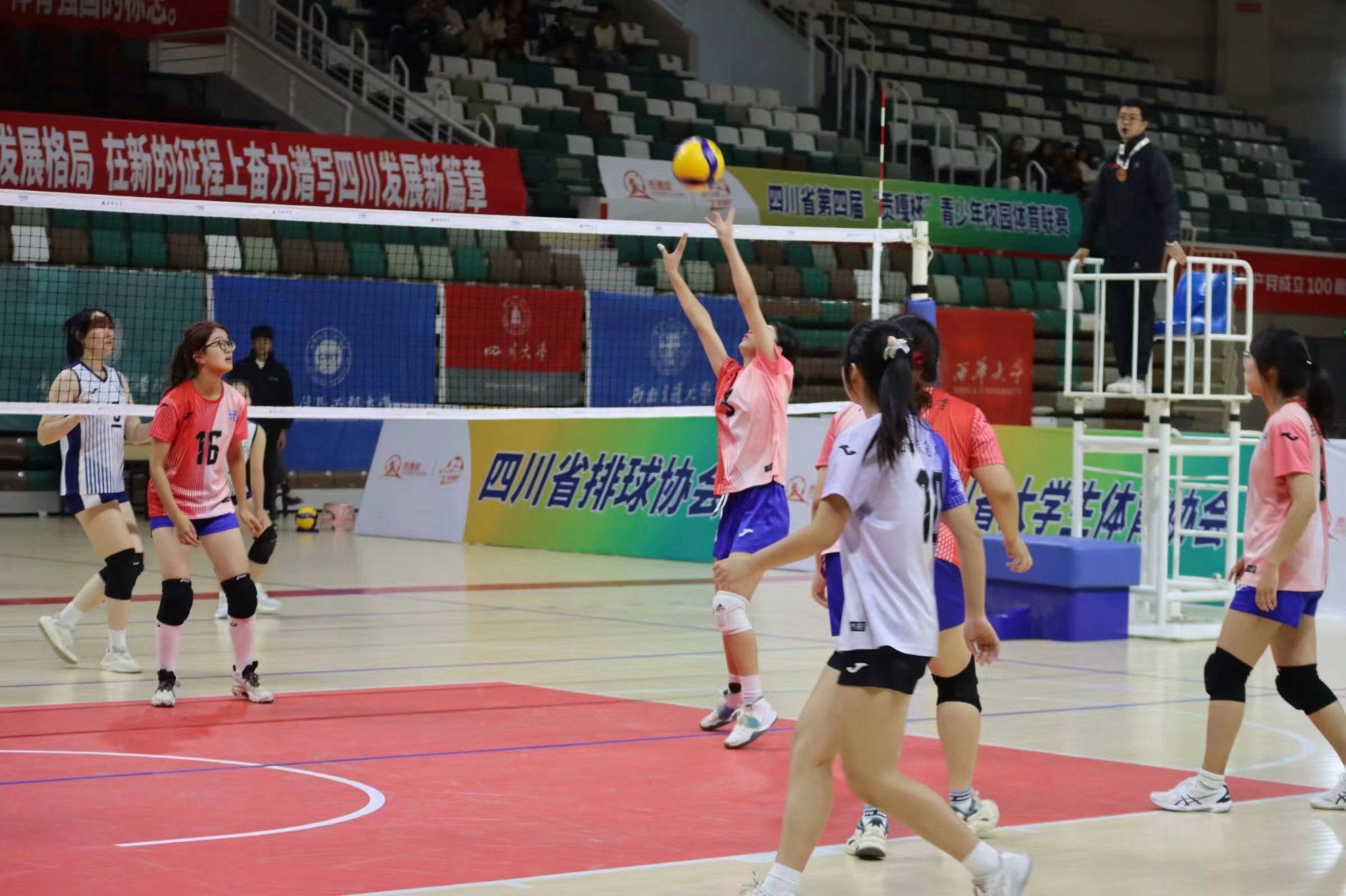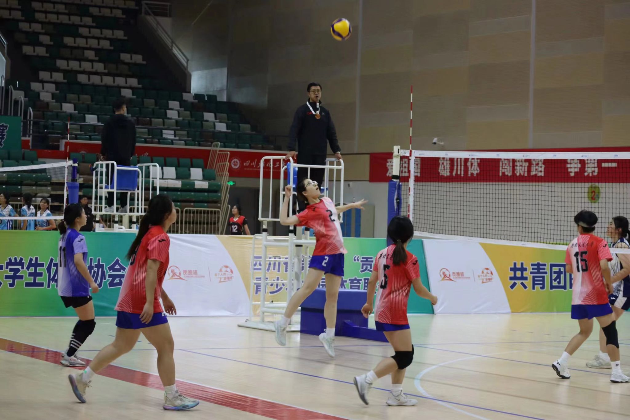 2023年11月24日,我校女子排球校园组在任挽澜、易述鲜教练的带领下出发自贡参加贡嘎杯高校校园组女子排球比赛。经过为期三天的激烈角逐,我校代表队以小组第一出线,在交叉淘汰赛中以2:0击败对手,顺利挺进四强,晋级决赛。