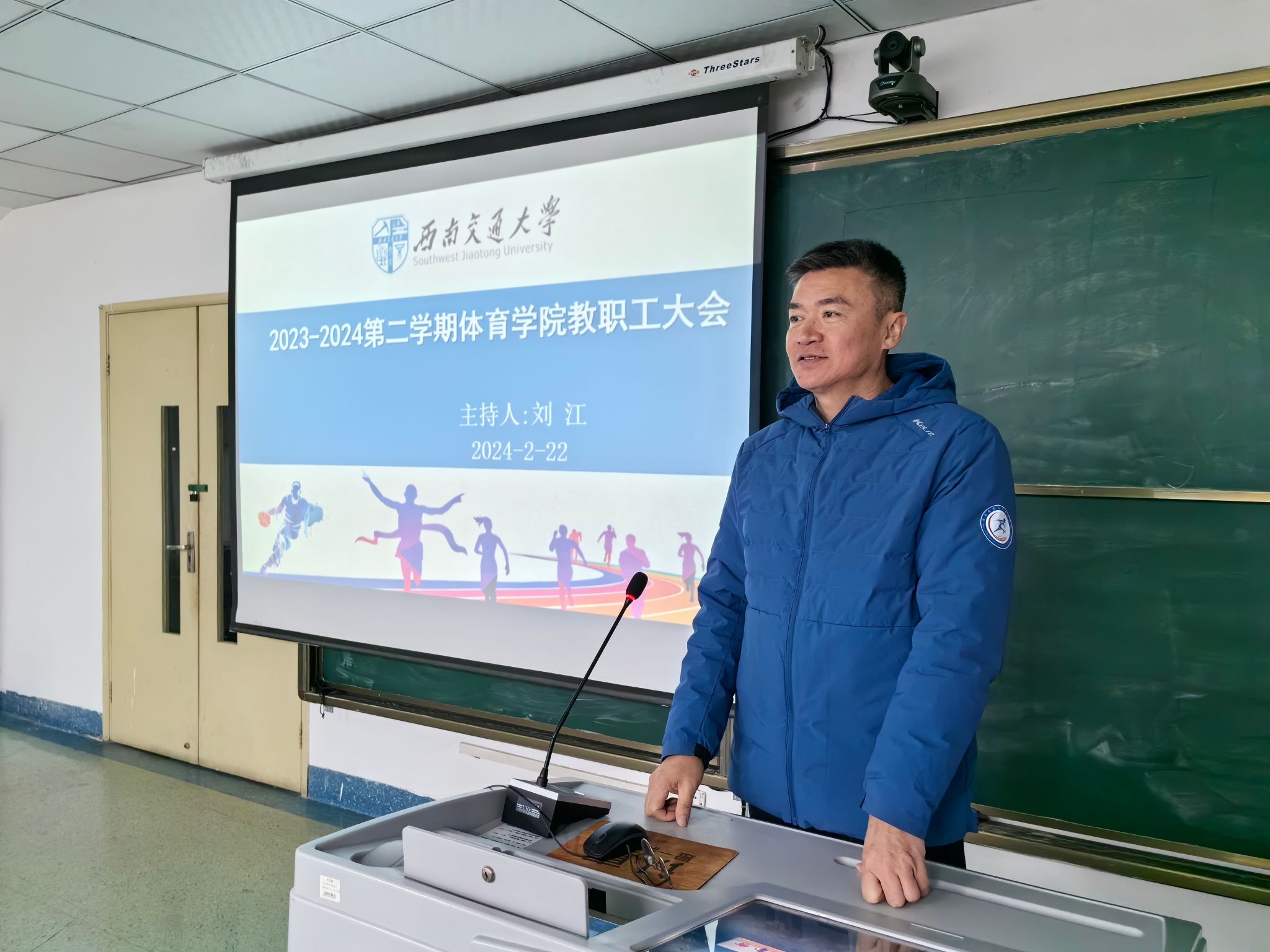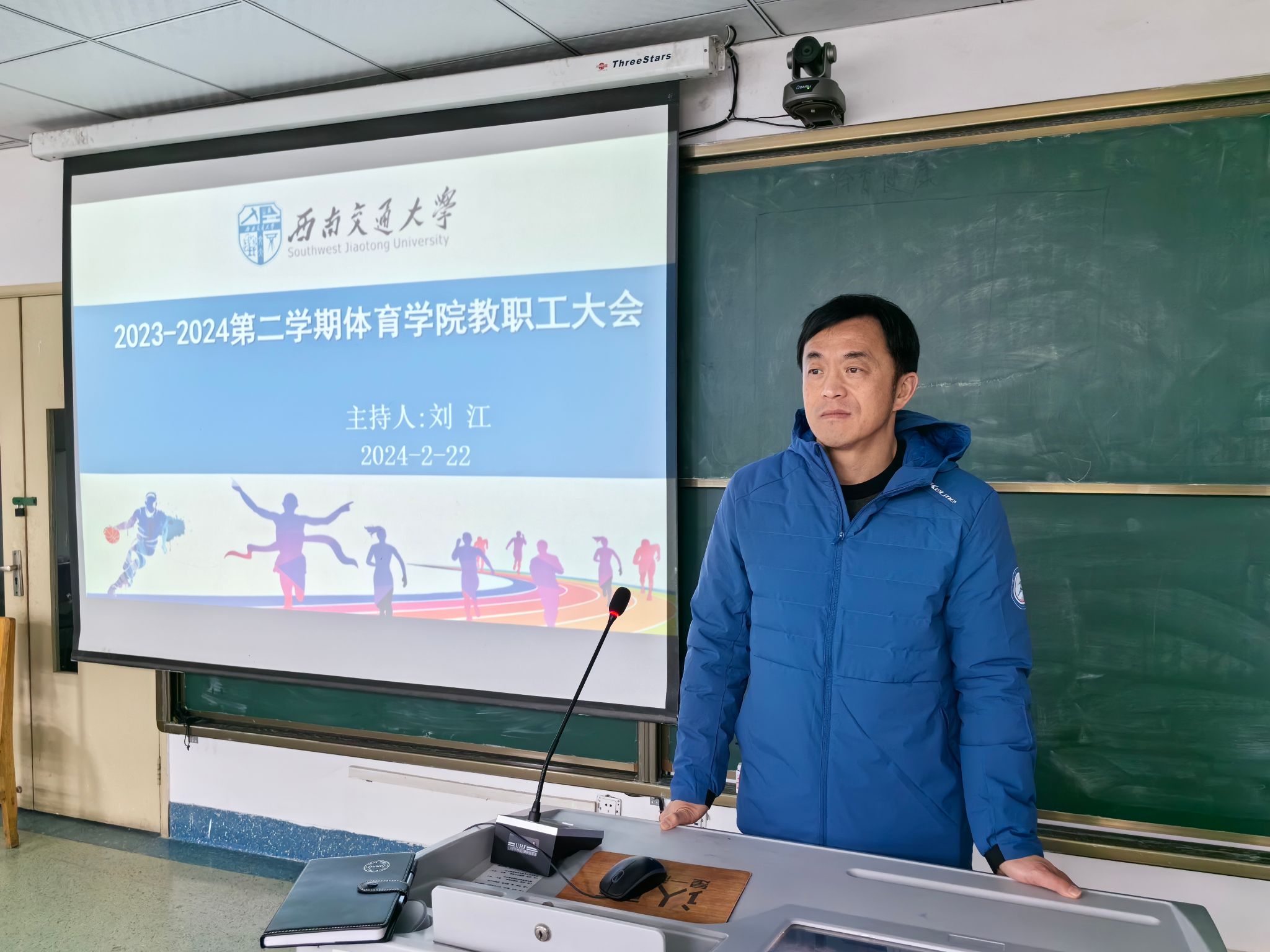 2024年2月22日上午,PA视讯官网入口在体育场研究生教研室召开2023—2024学年第二学期全院教职工大会,学院全体教职员工参加会议。大会由PA视讯官网入口院长刘江主持。