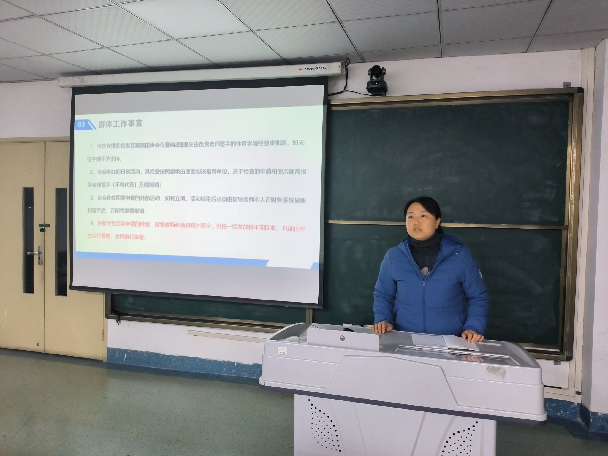 党委副书记赵晔就群体竞赛等相关工作进行了安排部署。新学期学院将整合竞赛类别,完善群体竞赛管理制度,规范日常管理,落实安全责任。赵晔副书记还强调了学生工作的重要性,明确了本学期的重点工作。