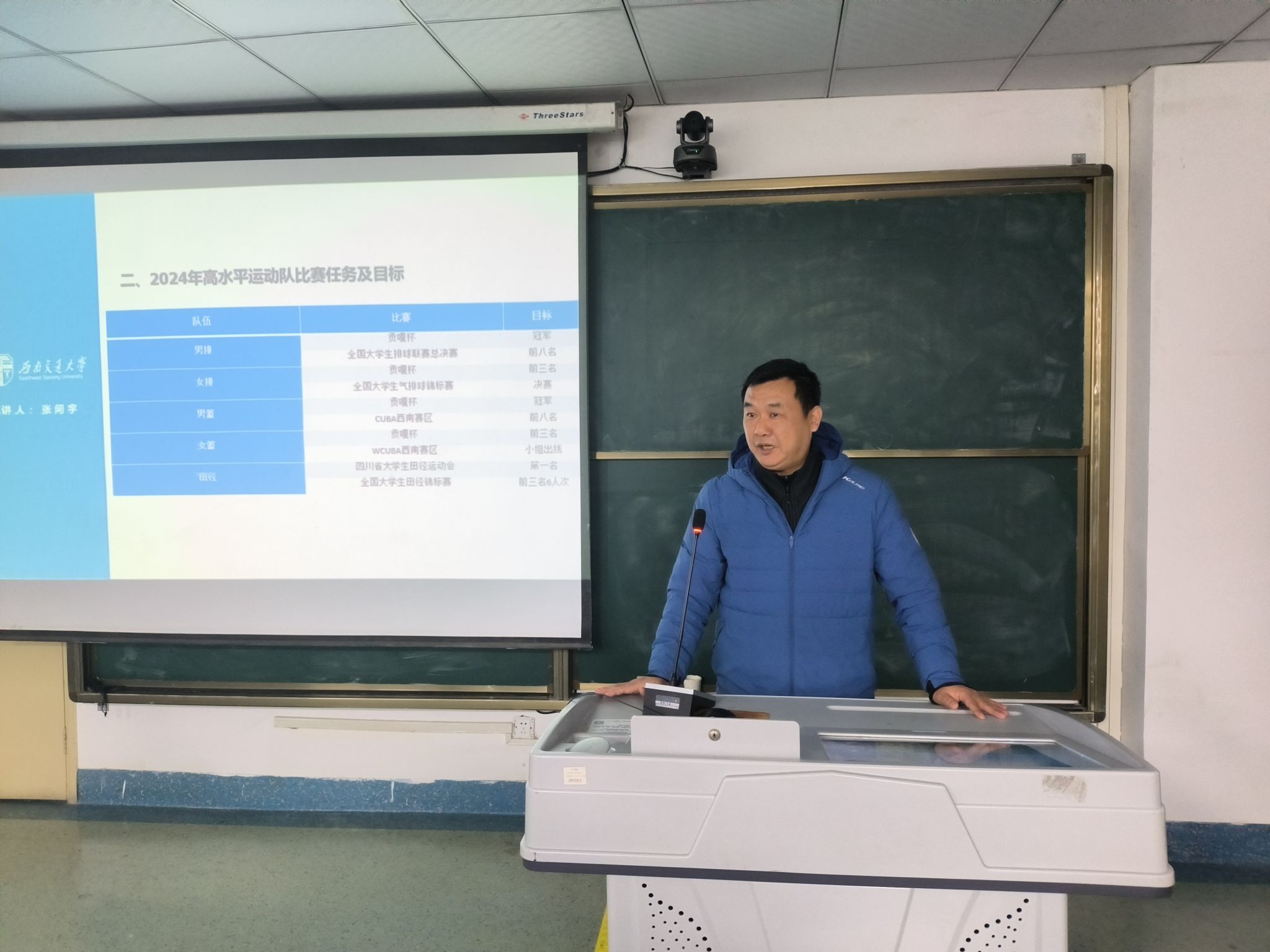 工会主席张问宇就学院工会及高水平运动队工作做了总结及安排部署。他表示,2024年学院工会将重点完成工会之家活动室的建设工作并组织开展形式多样化的工会活动。他还就高水平运动队工作行了总结,他指出,2023年PA视讯官网入口高水平运动队成绩突出,得到了学校的充分肯定,在2024年,运动队将一如既往奋力拼搏,争取取得更好的成绩,扩大学校影响力。