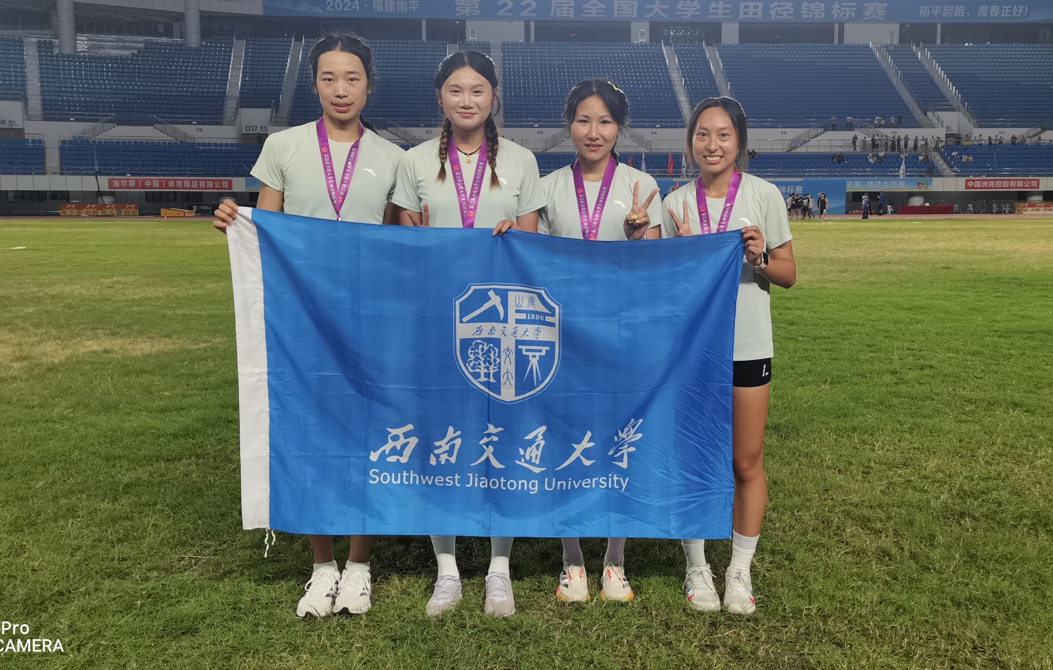 7月15日,第22届全国大学生田径锦标赛在福建省南平市体育中心点燃战火!来自全国各地438所高校的3701名运动员在经历了6天异常激烈的拼争,我校田径健儿顽强拼搏,勇夺2金2银2铜,6人6次携手捧回了六枚奖牌,2人2次获得第四名,载誉而归!人文学院任世琴同学不负众望,在女子100米和200米决赛中强势夺冠,获封“双冠王”,200米达运动健将。交大田径创造辉煌!3人4次达到国家一级运动员。6人9次刷新四川省大学生纪录。