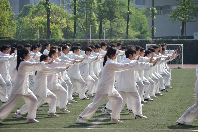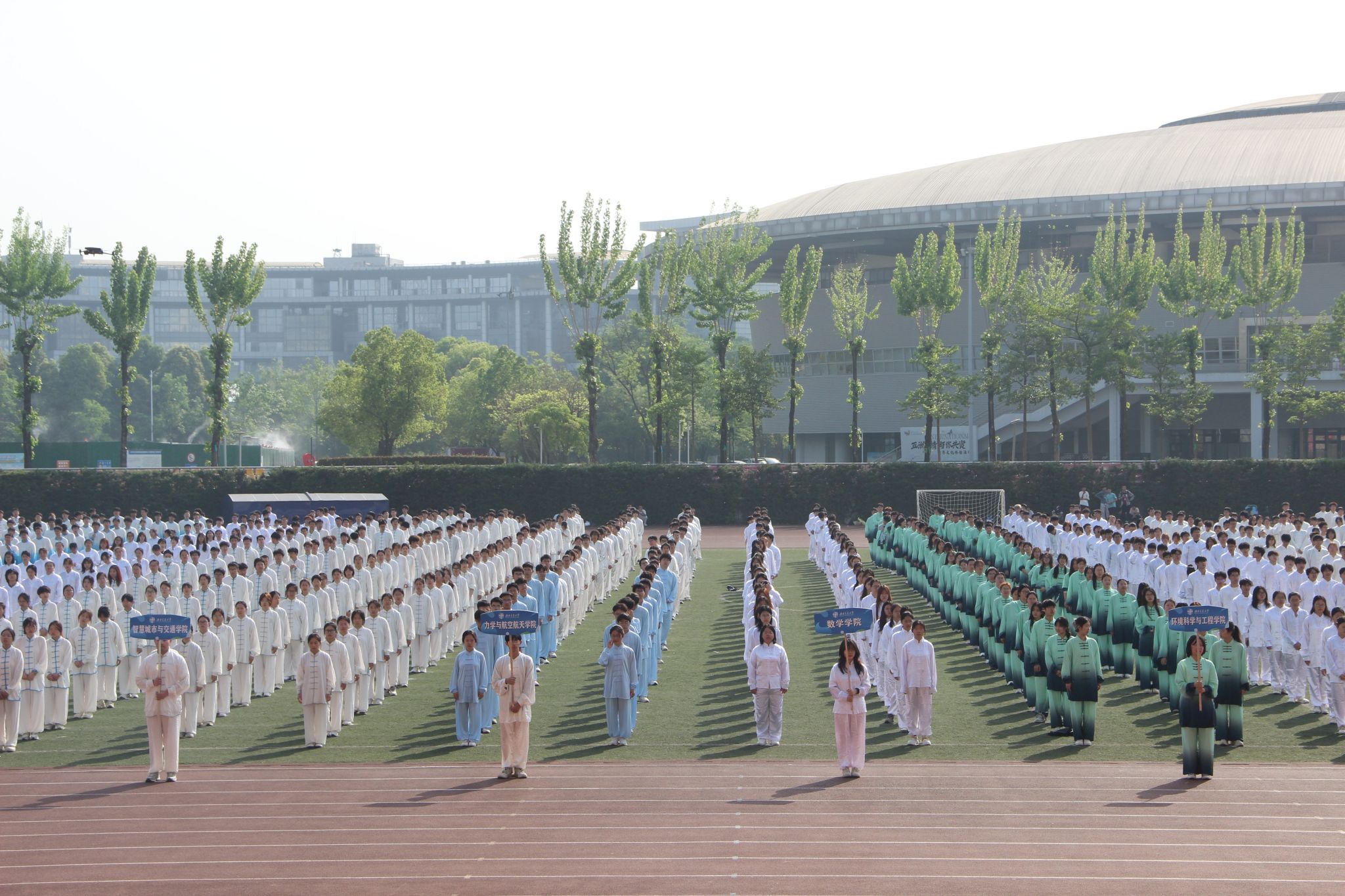 4 月 20 日上午九点,PA视讯官网入口犀浦校区北区田径场气氛热烈,第六届太极拳比赛在此隆重举行。本次比赛吸引了 23 个学院共 2200 名学生同场竞技,以刚柔并济的拳法展现传统文化魅力,生动诠释了学校 “以体育人、健康第一” 的创新教育理念。