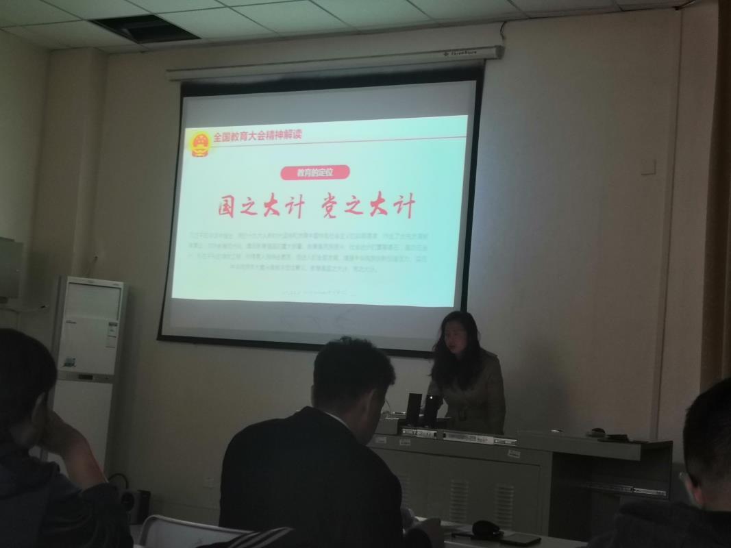 潘喆书记结合自己理论学习的感悟,从“全国教育大会精神全文解读”、“习近平十大‘金句’”、“践行教师的初心使命”三个方面进行了分享。他指出,全国教育大会的精神在于了解教育的定位是国之大计、党之大计,清楚教育的首要问题和根本任务以及改革发展新理念,明白怎样培养德智体美劳全面发展的社会主义建设者和接班人及如何建立科学教育评价导向,认清人民教师无上光荣、思想政治工作是生命线、扣好人生第一粒扣子的重要意义。同时,也要深刻认识和牢记习近平总书记的十大“金句”,切实解决好教育的首要问题。