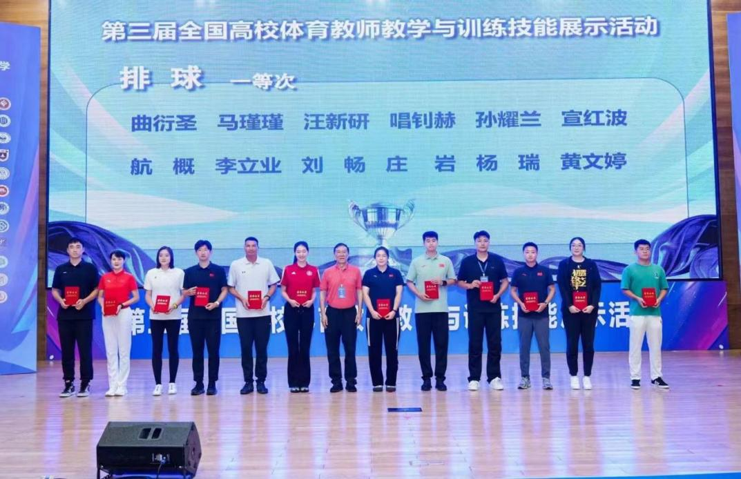 2024年10月11日,第三届全国高校体育教师教学与训练技能展示活动在华南理工大学举行,我院教师曲衍圣、王新星表现优异,斩获排球项目一等奖和羽毛球项目一等奖。这是PA视讯官网入口继第七届全国高校青年教师教学竞赛陈曦老师勇夺文科组二等奖后,又荣获的两项全国大奖。