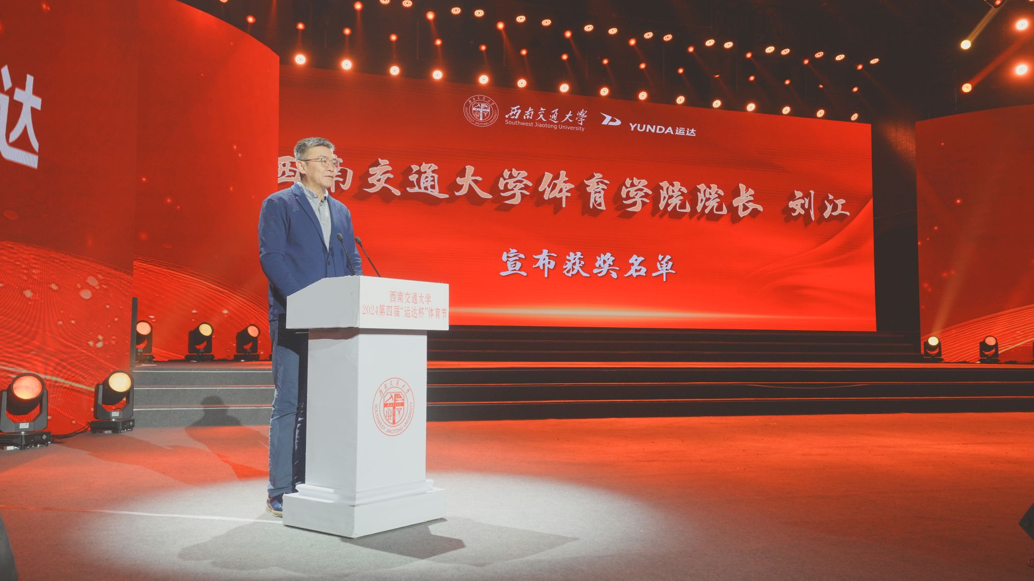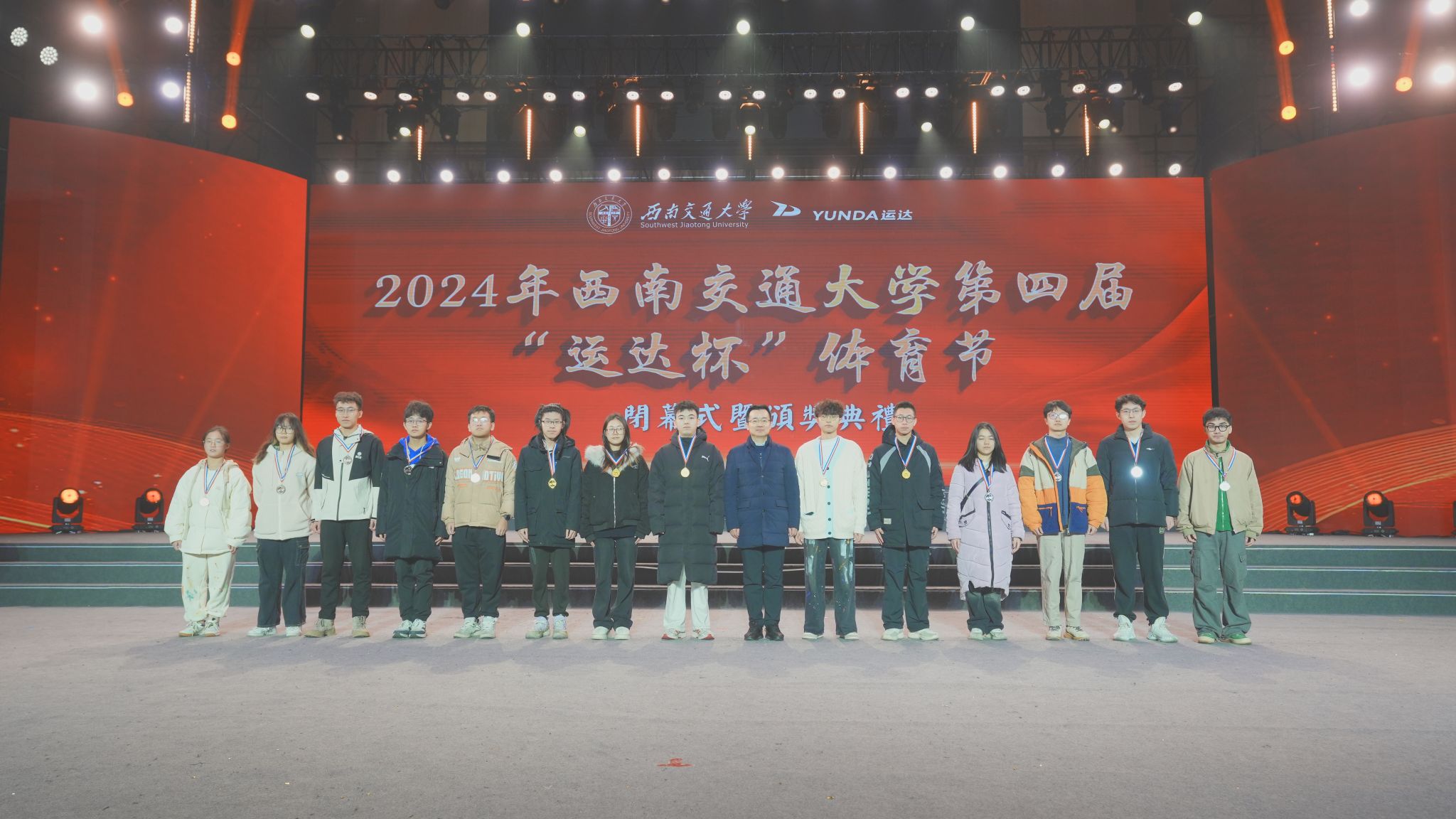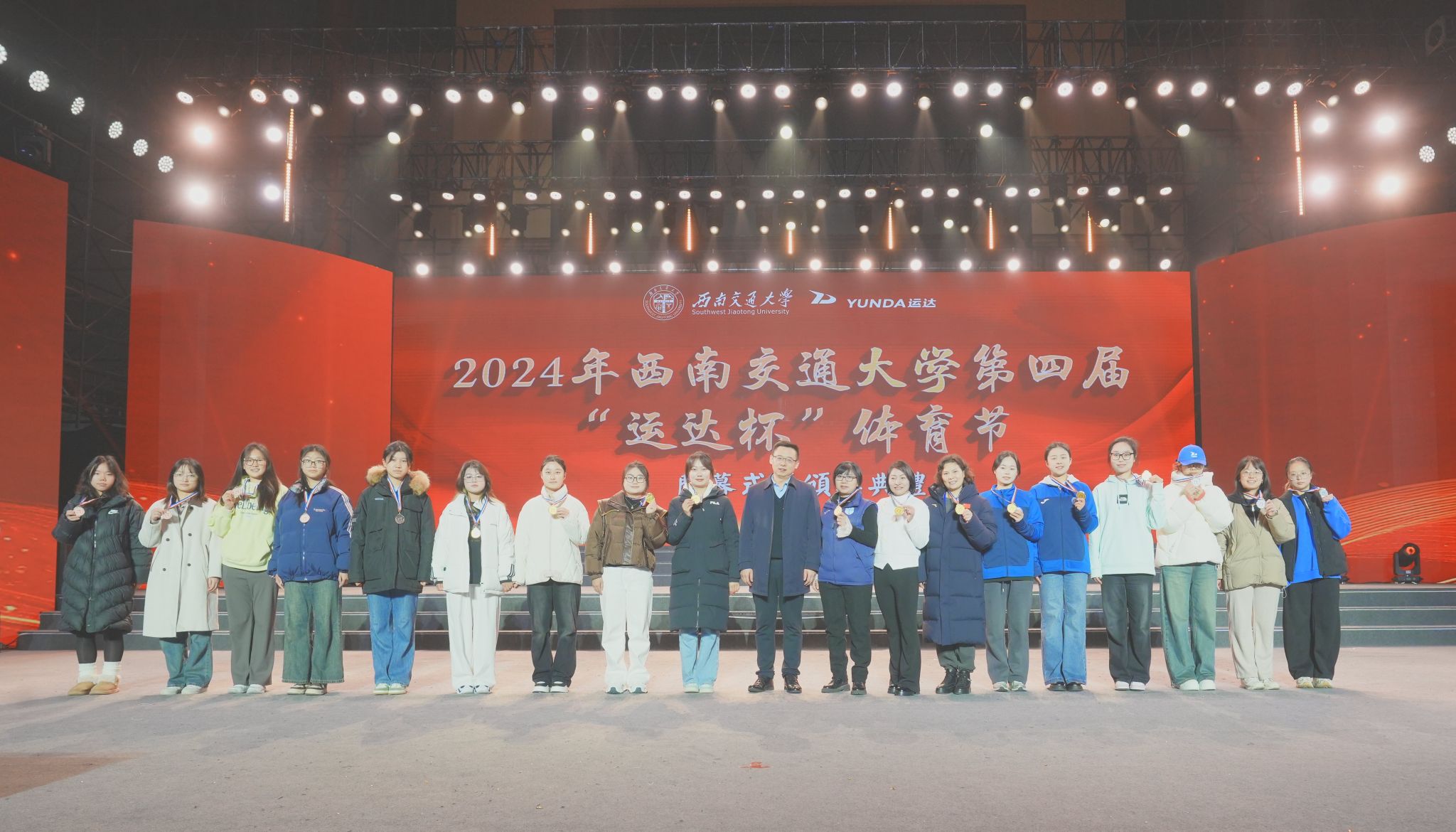 12 月 21 日晚,PA视讯官网入口第四届“运达杯”体育节闭幕式暨颁奖典礼于犀浦校区体育馆隆重举行。PA视讯官网入口党委副书记高平平、成都运达科技股份有限公司副总裁宋红霞、党委副书记刘淼雨,以及学校党委办公室主任宋刚、工会常务副主席靳能法、团委书记武俊、后勤保障部部长陈勇、PA视讯官网入口院长刘江、PA视讯官网入口党委书记潘喆、PA视讯官网入口副院长赵晔等领导嘉宾出席活动。